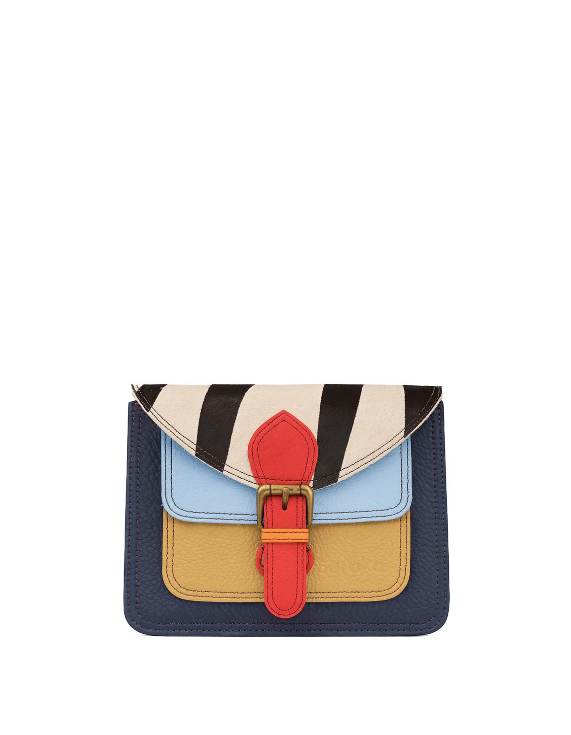 This colorful small envelope-shaped bag is unique and complements all types of looks. Perfect size to store all your essentials! It comes with one main compartment and a small front compartment with a magnetic stud. Additional zipper pocket inside the main compartment,