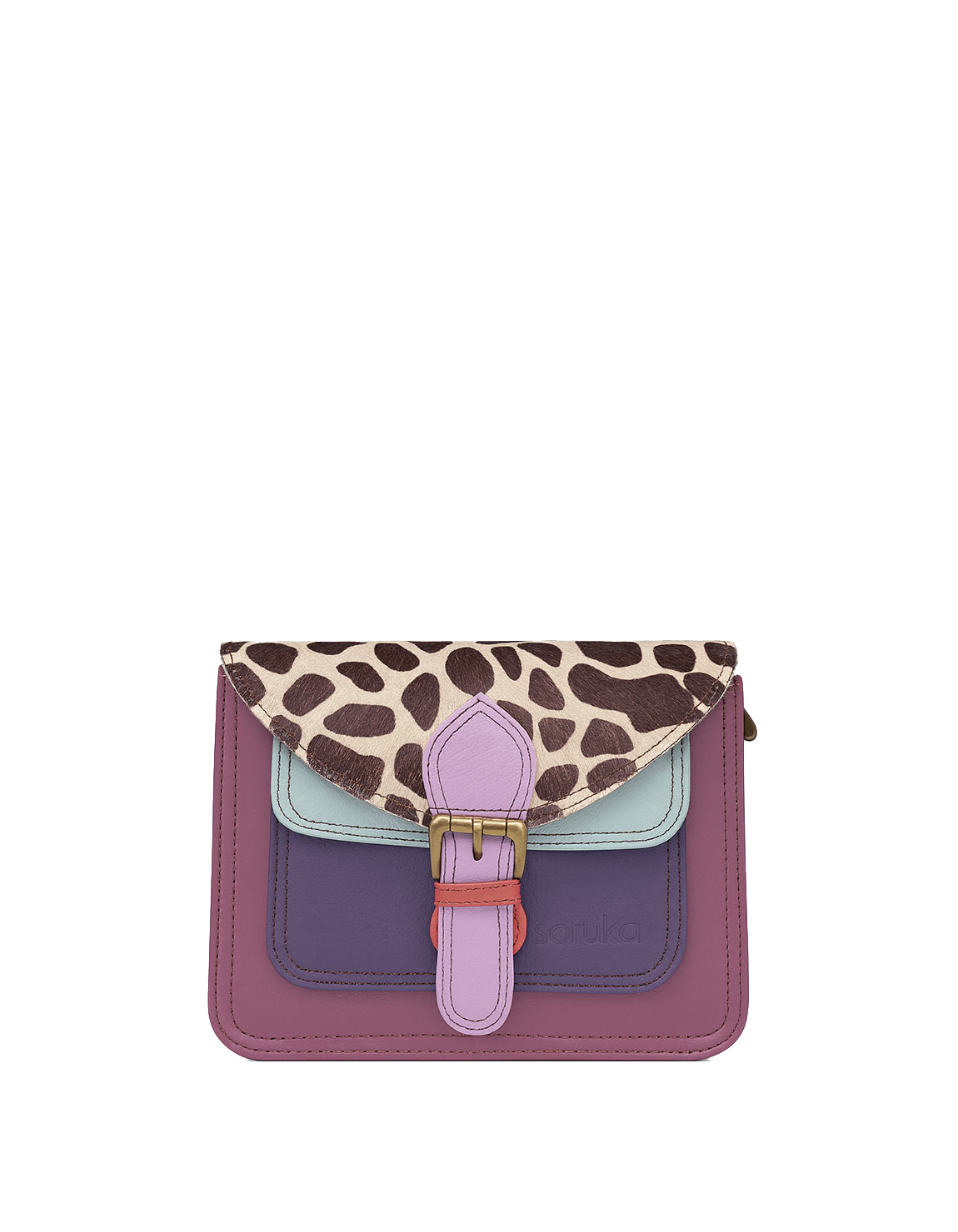 Beautiful 100% Recycled Leather Crossbody / Shoulder Bag. Eco-friendly Handmade Bag in Shades of Purple and with Animal Print flap.