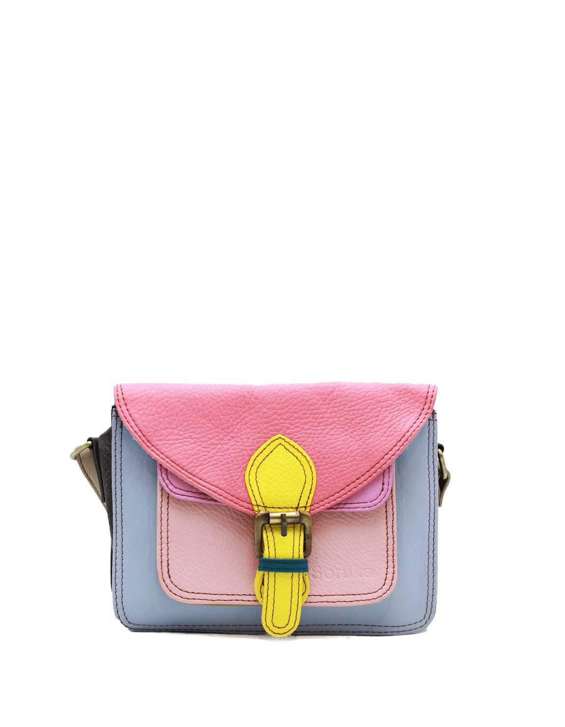 Beautiful 100% Recycled Leather Crossbody / Shoulder Bag. Eco-friendly Handmade Bag in Shades of Blue and Pink.