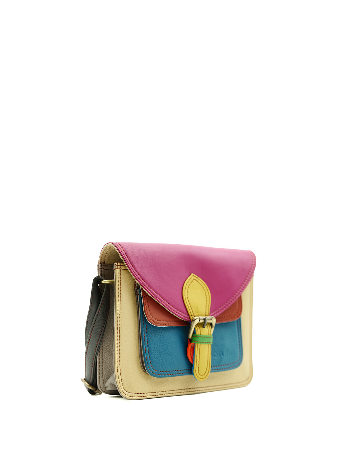 Beautiful 100% Recycled Leather Crossbody / Shoulder Bag. Eco-friendly Handmade Bag in Shades of Pink, Yellow and Blue.