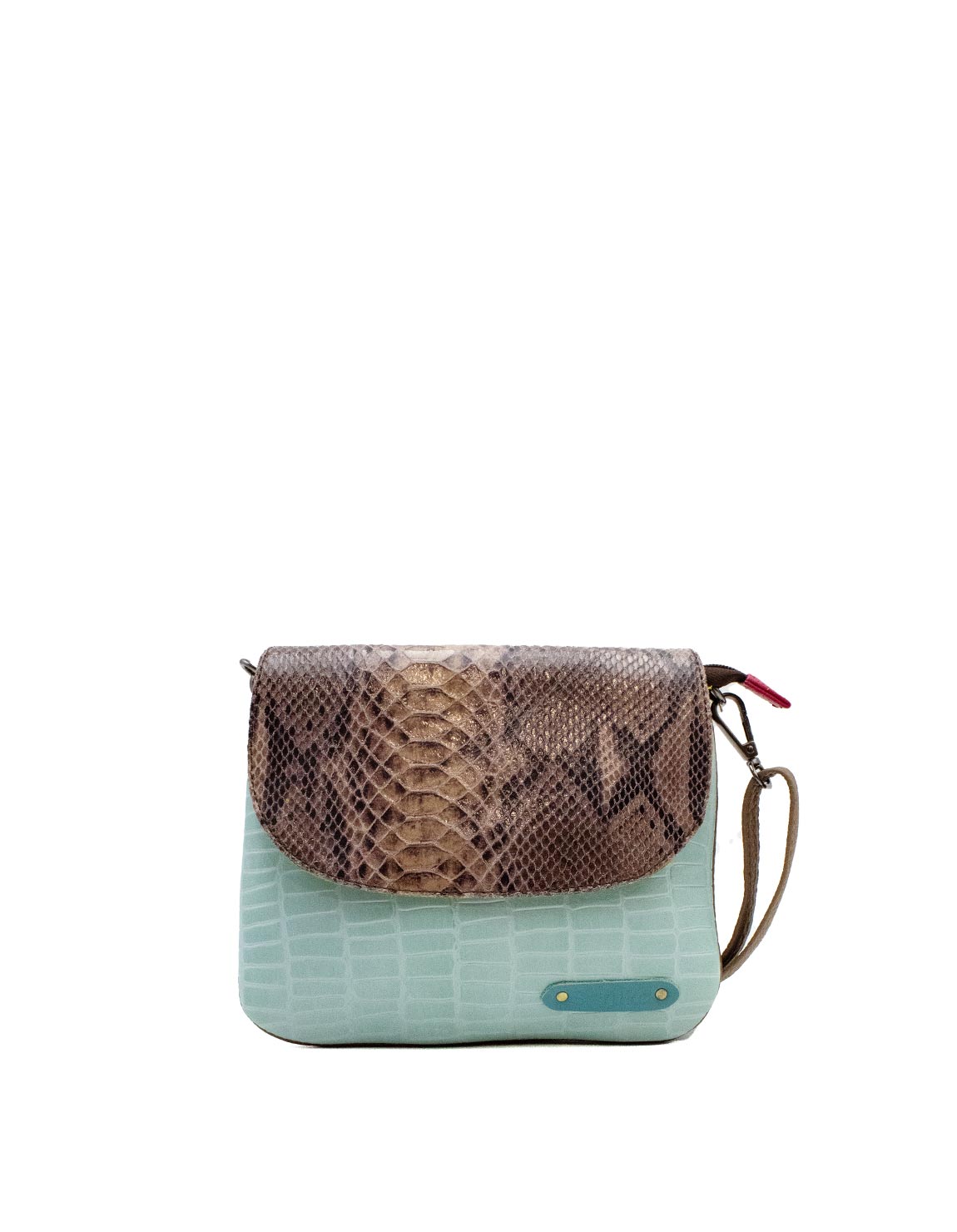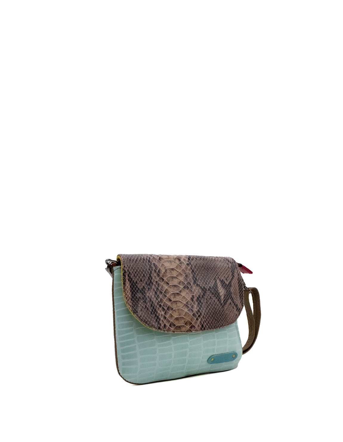 This colorful small saddle-shaped handbag is unique and compliments all types of looks. The bag comes with an adjustable long strap so it can be worn as a shoulder bag or crossbody. It fastens with a magnetic stud beneath the buckle. Additional zipper pocket inside the main compartment and an outside pocket in the back.