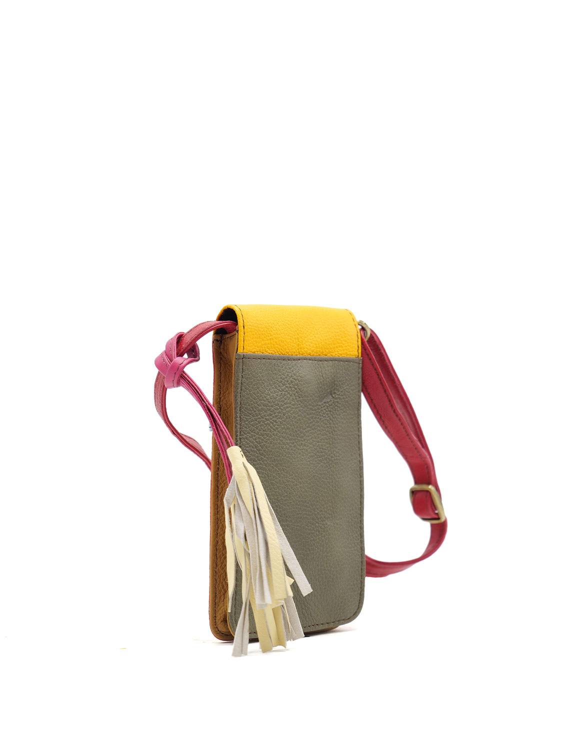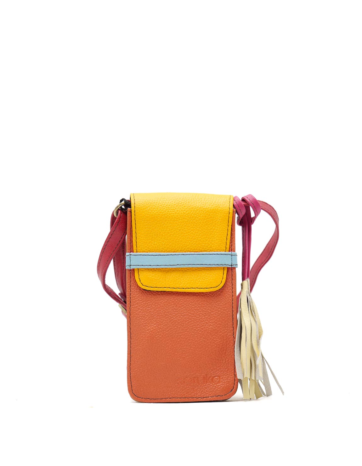 Recycled Leather Phone Bag in Shades of Orange and Yellow. Beautiful Handcrafted Eco-Friendly Purse made with Upcycled Leather.