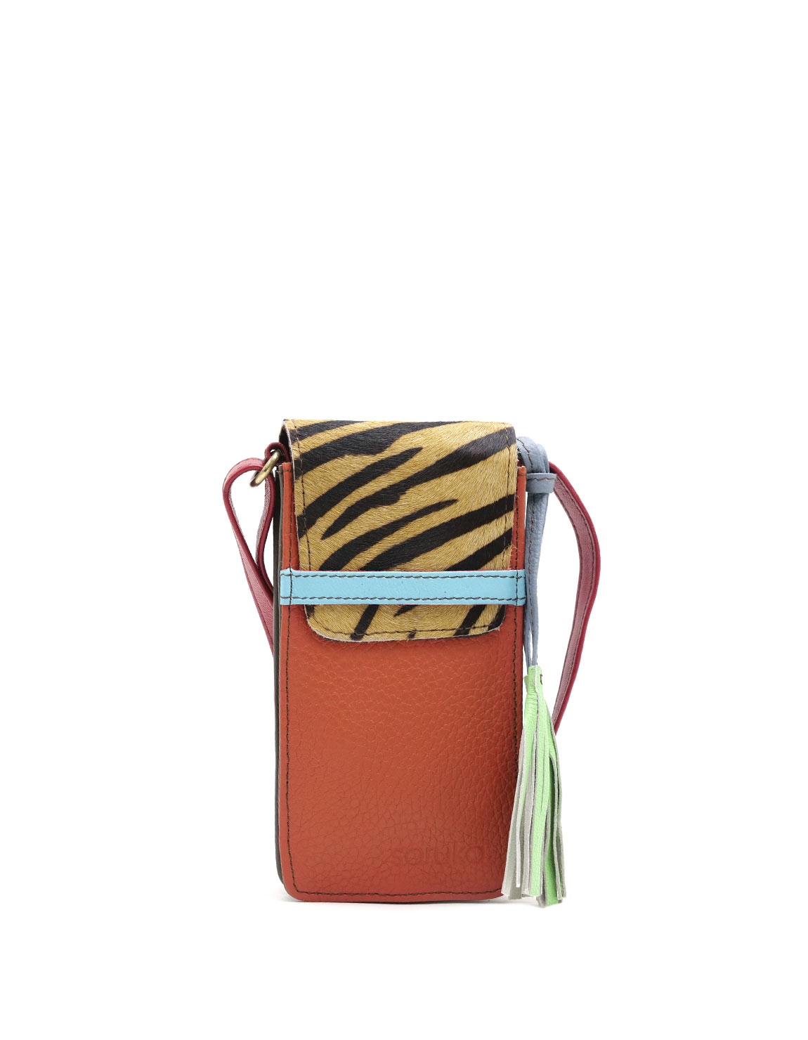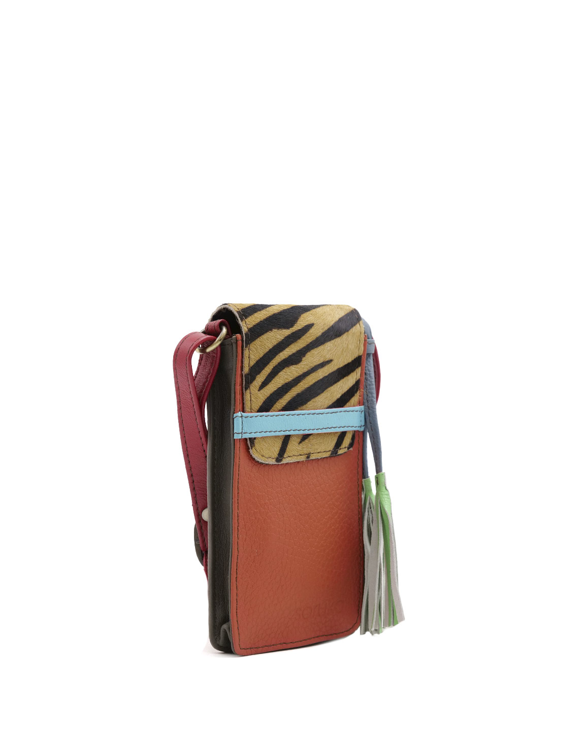 Recycled Leather Phone Bag with Animal Print and in Shades of Orange. Beautiful Handcrafted Eco-Friendly Purse made with Upcycled Leather.