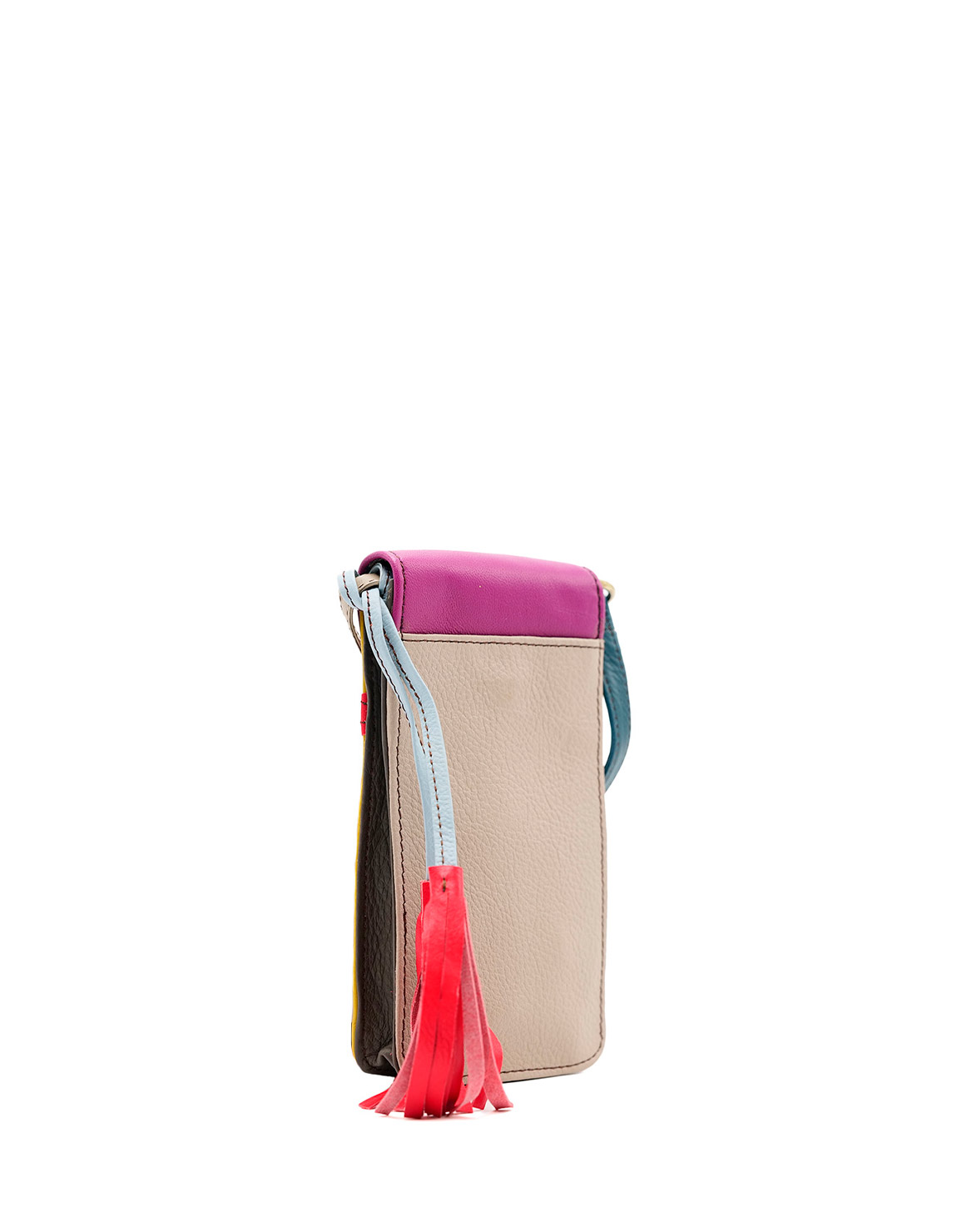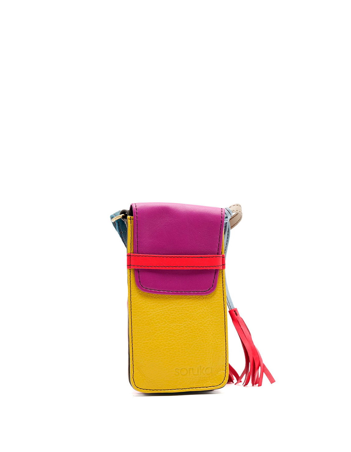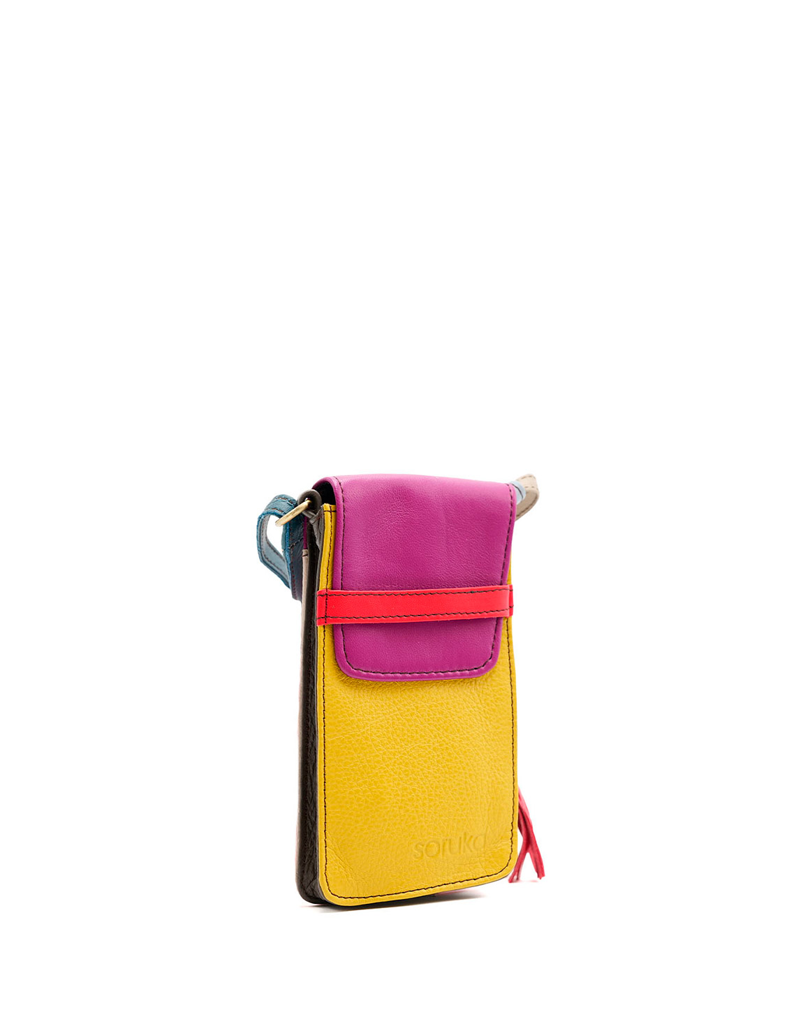 Recycled Leather Phone Bag in Shades of Pink and Yellow. Beautiful Handcrafted Eco-Friendly Purse made with Upcycled Leather.