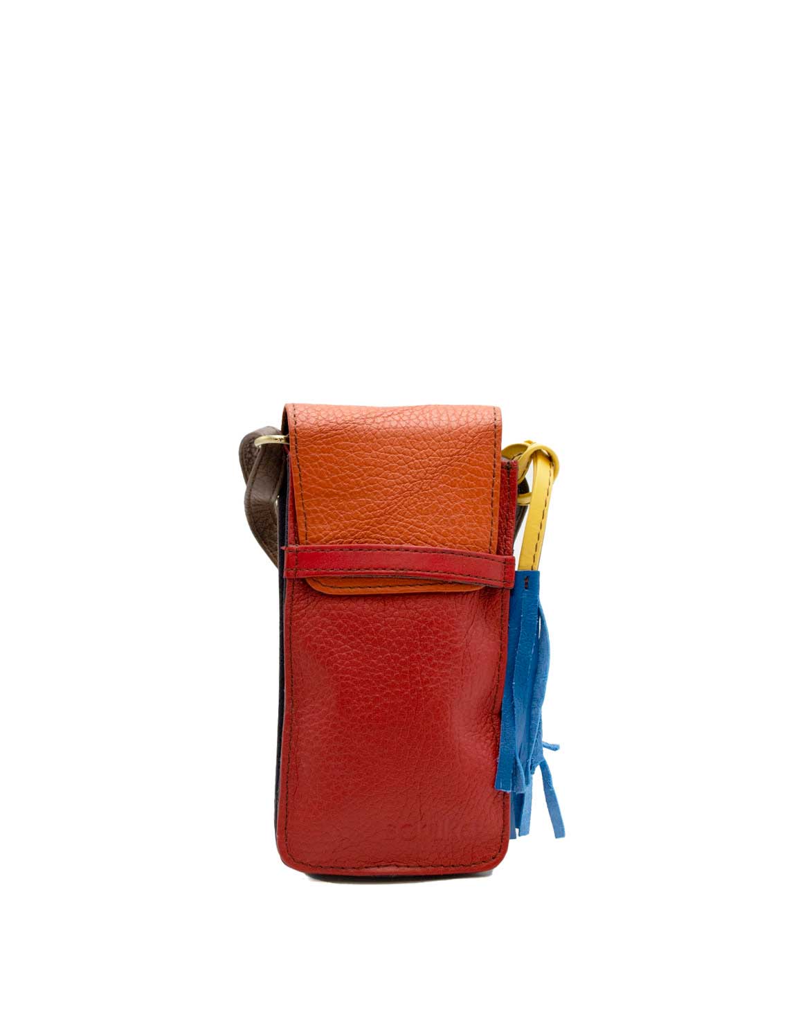 Recycled Leather Phone Bag in Shades of Red and Orange. Beautiful Handcrafted Eco-Friendly Purse made with Upcycled Leather.