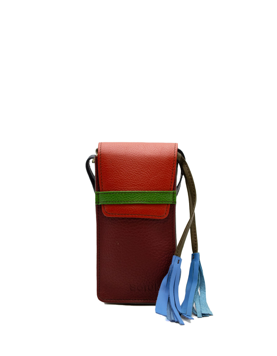 Recycled Leather Phone Bag in Shades of Dark Red. Beautiful Handcrafted Eco-Friendly Purse made with Upcycled Leather.