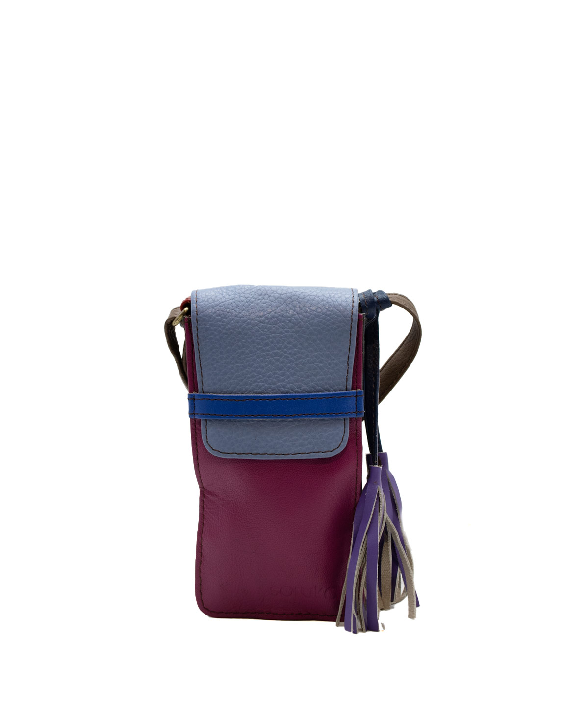 Recycled Leather Phone Bag in Shades of Purple and Blue. Beautiful Handcrafted Eco-Friendly Purse made with Upcycled Leather.