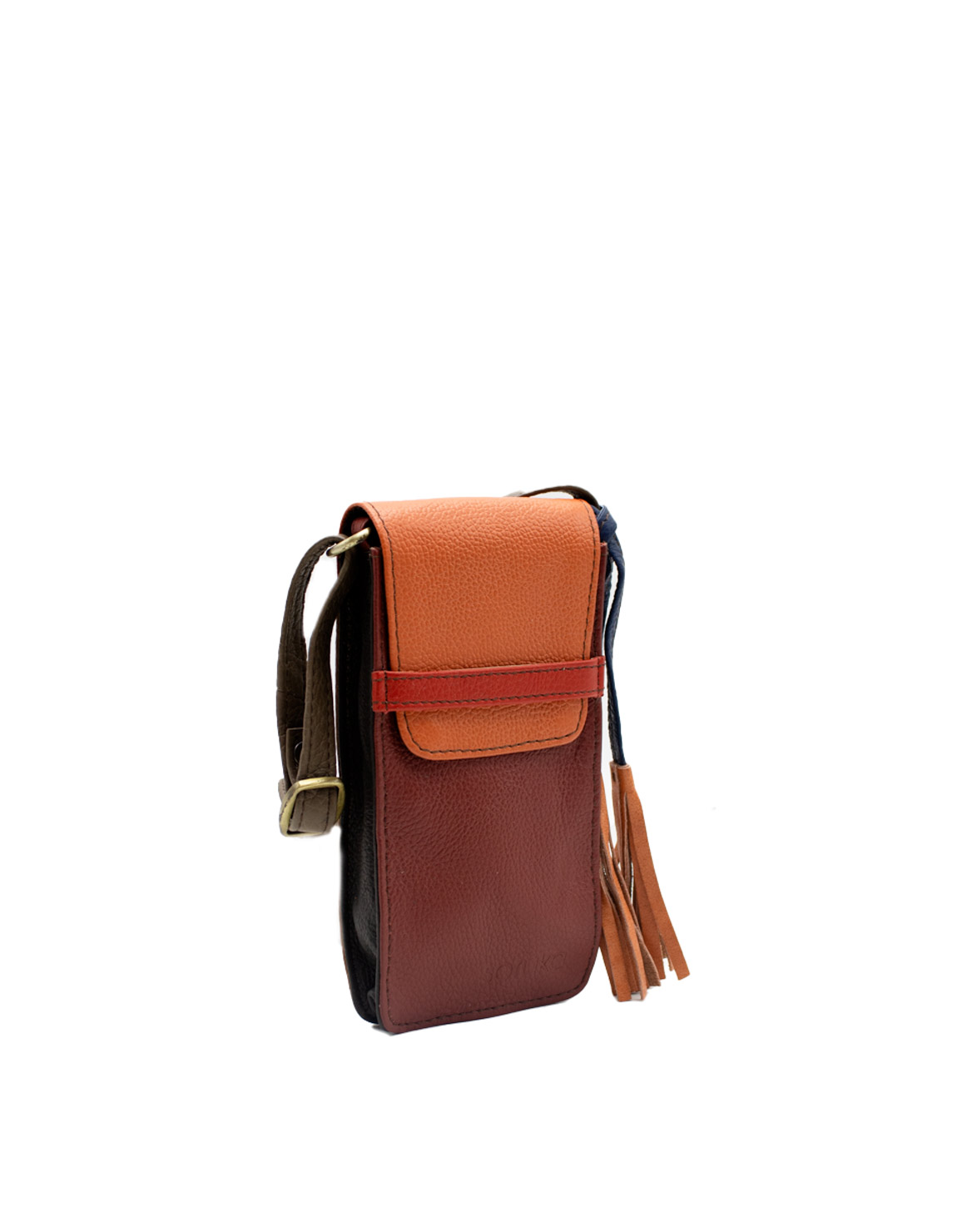 Recycled Leather Phone Bag in Shades of Red and Orange. Beautiful Handcrafted Eco-Friendly Purse made with Upcycled Leather.