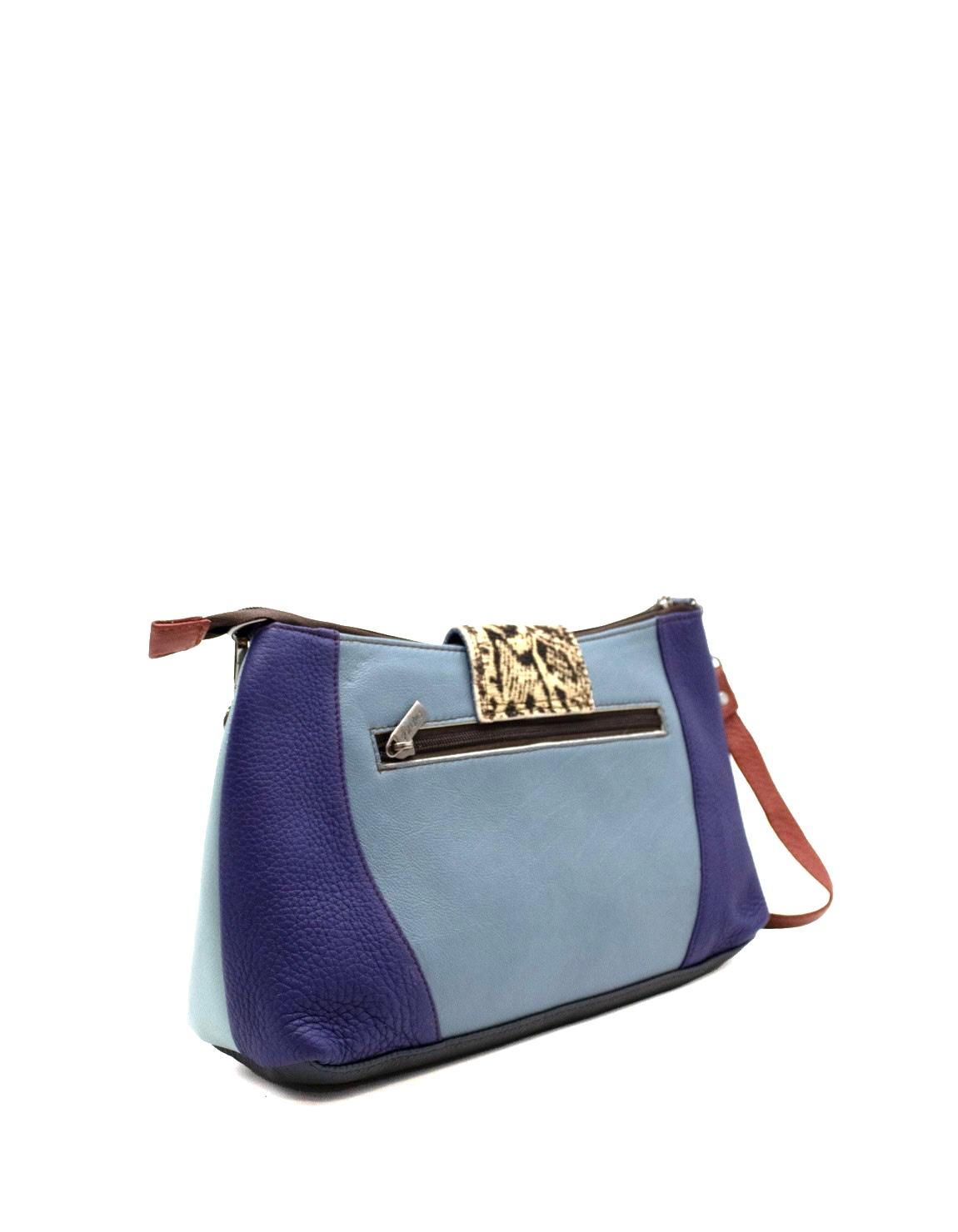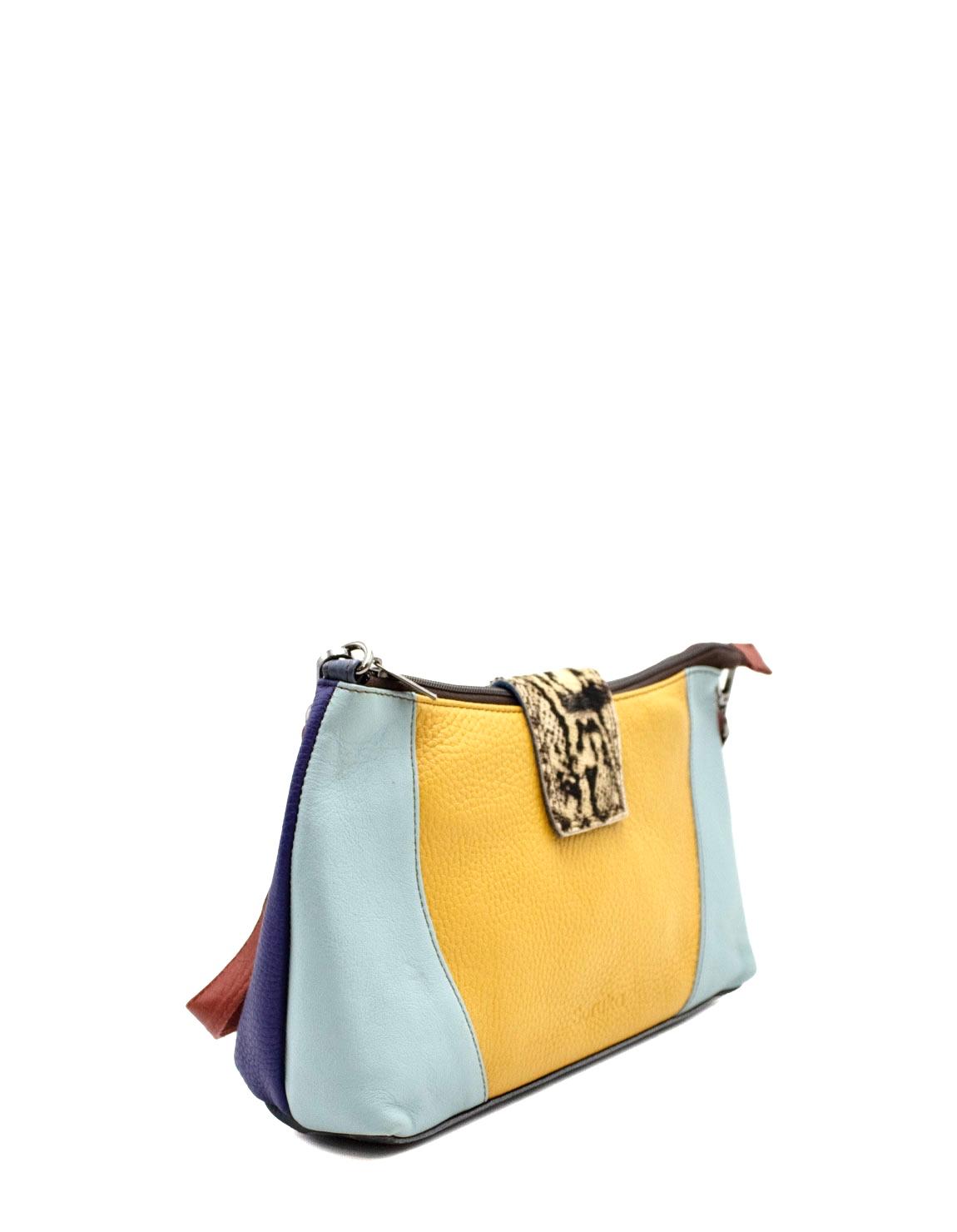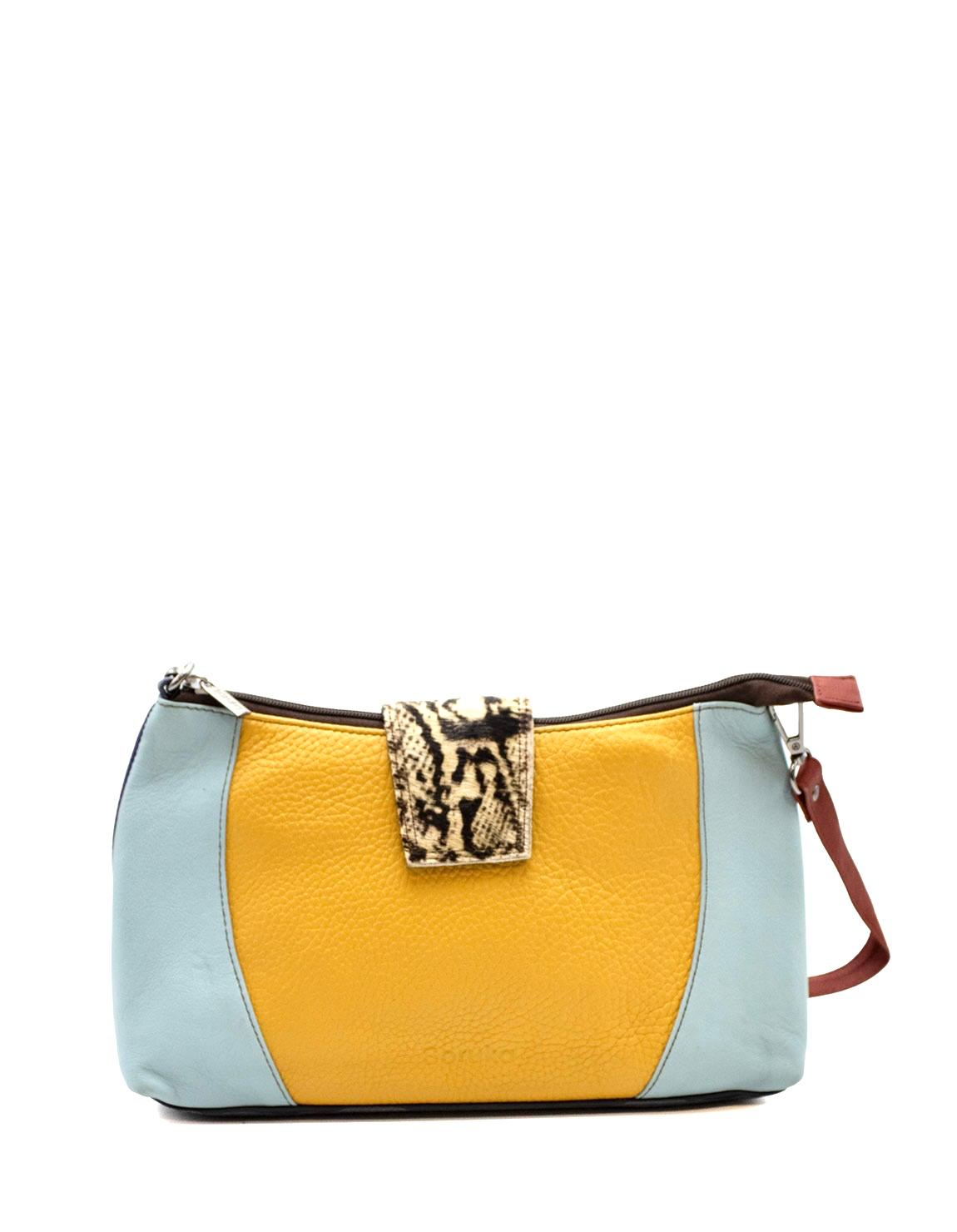 Effortlessly stylish and sustainably made, this handcrafted medium-size recycled leather shoulder bag is the perfect blend of elegance and functionality. Designed for daily wear, it features a sleek silhouette in shades of Yellow and Blue with a touch of bold animal print for a statement look.