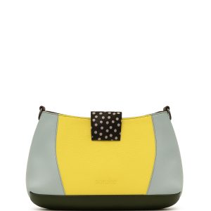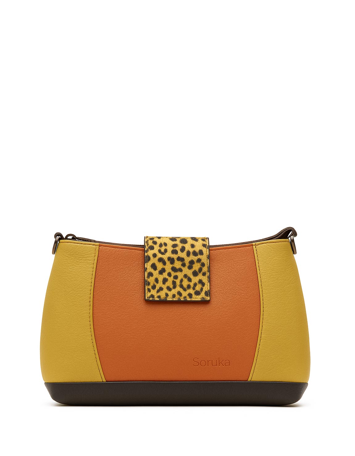 Effortlessly stylish and sustainably made, this handcrafted medium-size recycled leather shoulder bag is the perfect blend of elegance and functionality. Designed for daily wear, it features a sleek silhouette in shades of Yellow and Orange with a touch of bold animal print for a statement look.