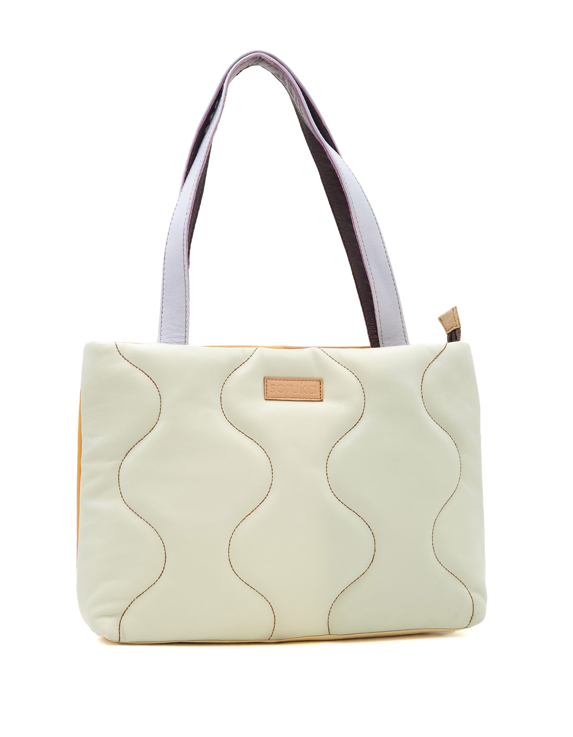 Beautiful 100% recycled leather bag that will make a statement when you wear it and add a touch of glamour to your look. Eco-friendly handcrafted bag in shades of White.
