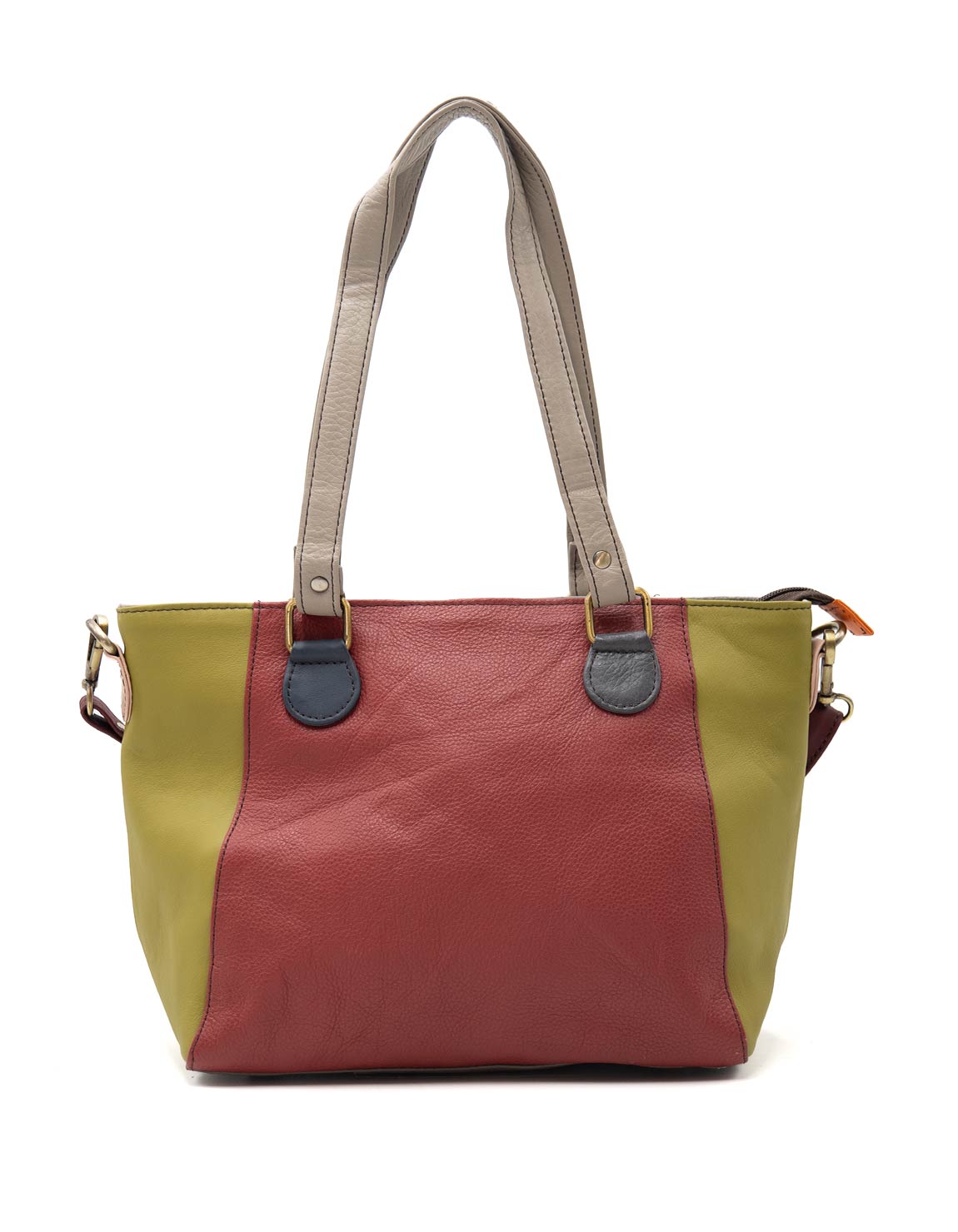 Beautiful 100% Recycled Leather Medium Tote / Shoulder Bag. Eco-friendly Handmade Bag in Burgundy and Green colors.