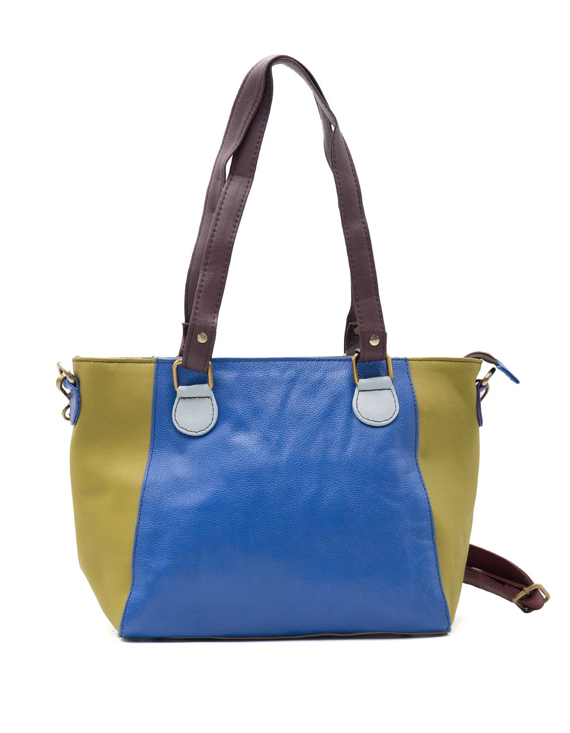Beautiful 100% Recycled Leather Medium Tote / Shoulder Bag. Eco-friendly Handmade Bag in Dark Blue and Green colors.