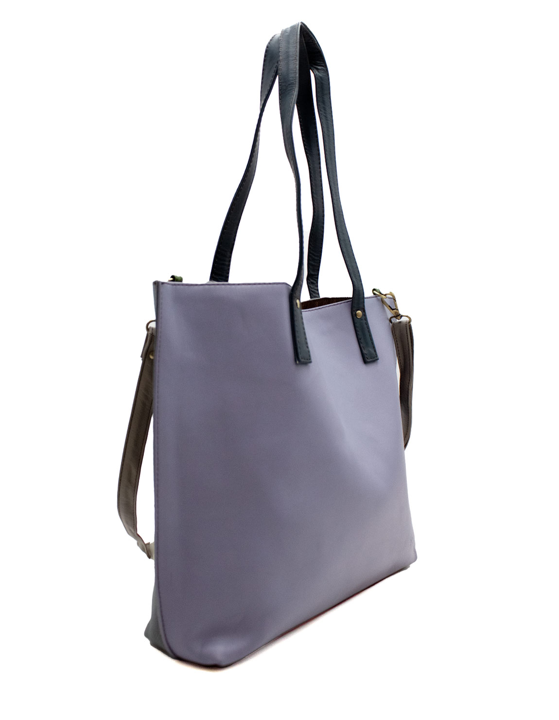 100% Recycled Leather Shoulder Bag in Shades of Purple and Gray. Beautiful Eco-friendly Handmade Tote with Inside Pouch.