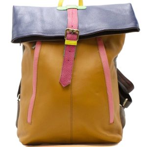 This colorful large leather backpack is unique and compliments all types of looks. Lots of rooms to fit all your essentials. Perfect size for a large computer or for a weekend gateway travel bag.