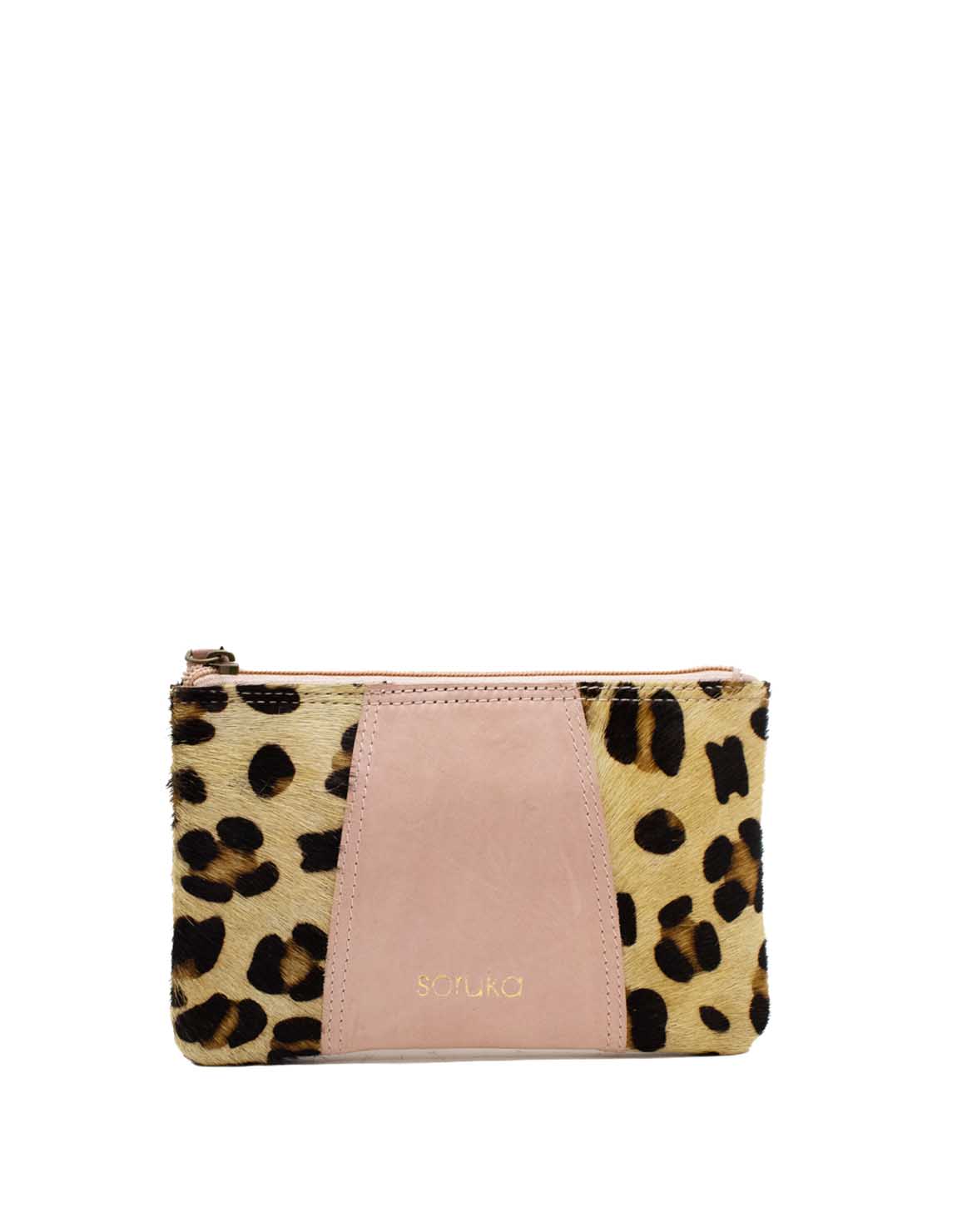 Leather Pouch Wallet · Handmade Women’s Recycled Leather Pouch · Animal Print Bag · Soft Makeup Bag · Travel Case · Small Handbag
