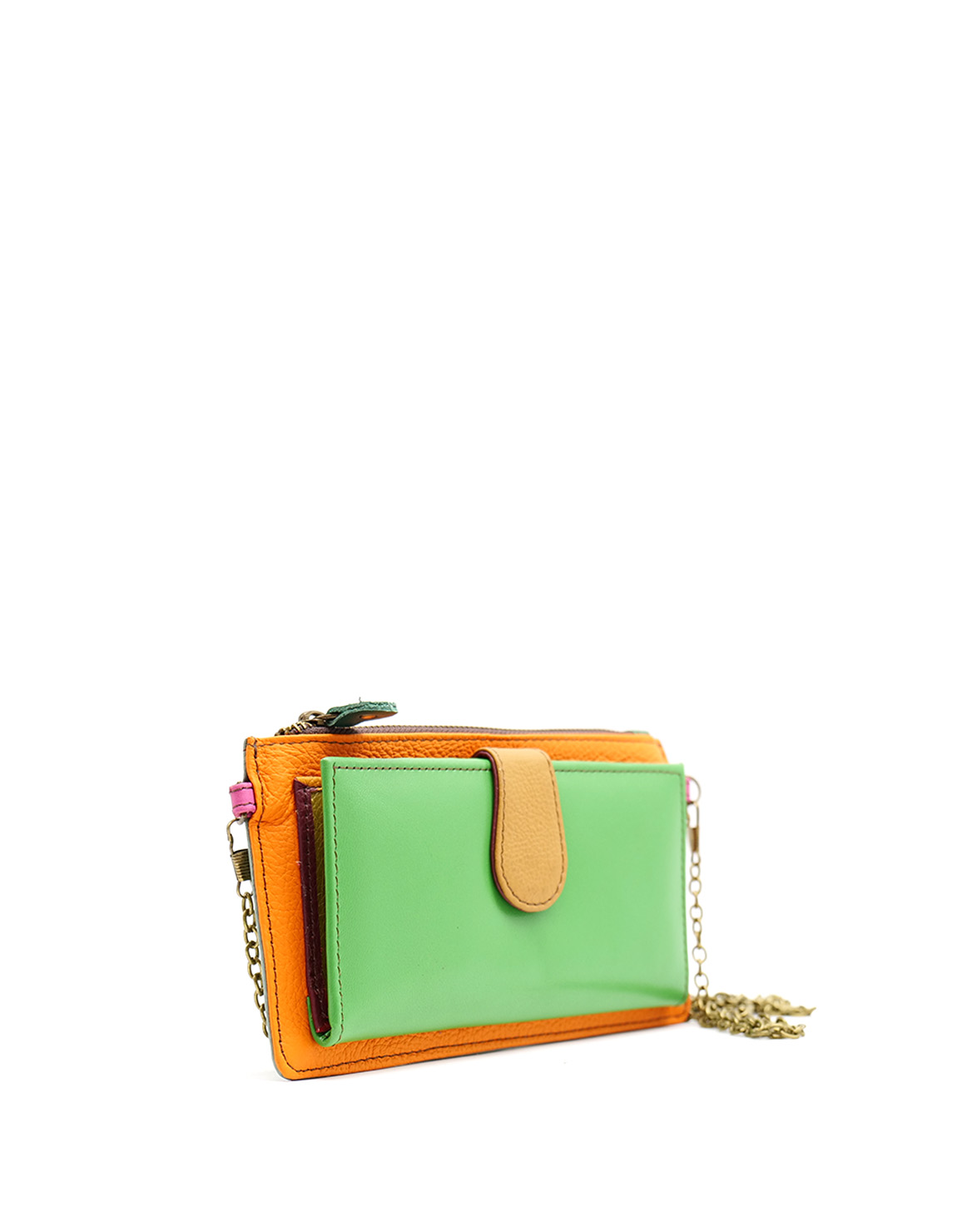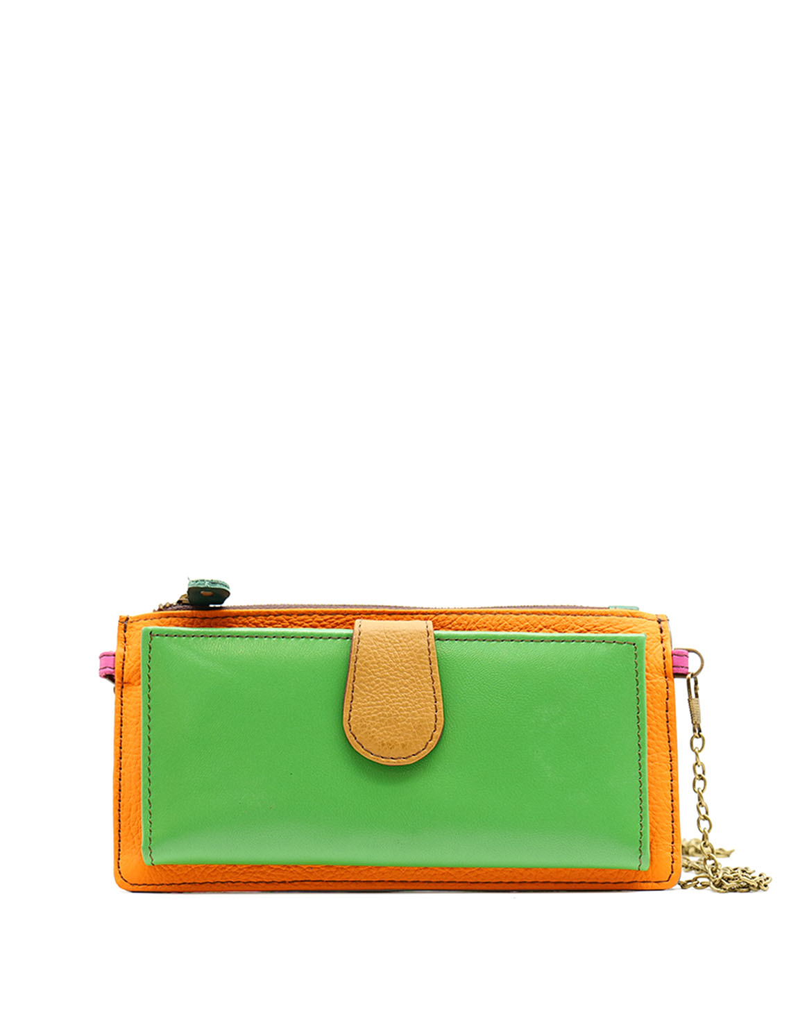 Recycled Leather Clutch in Shades of Green and Orange. Beautiful Handcrafted Eco-Friendly Wallet made with Upcycled Leather.