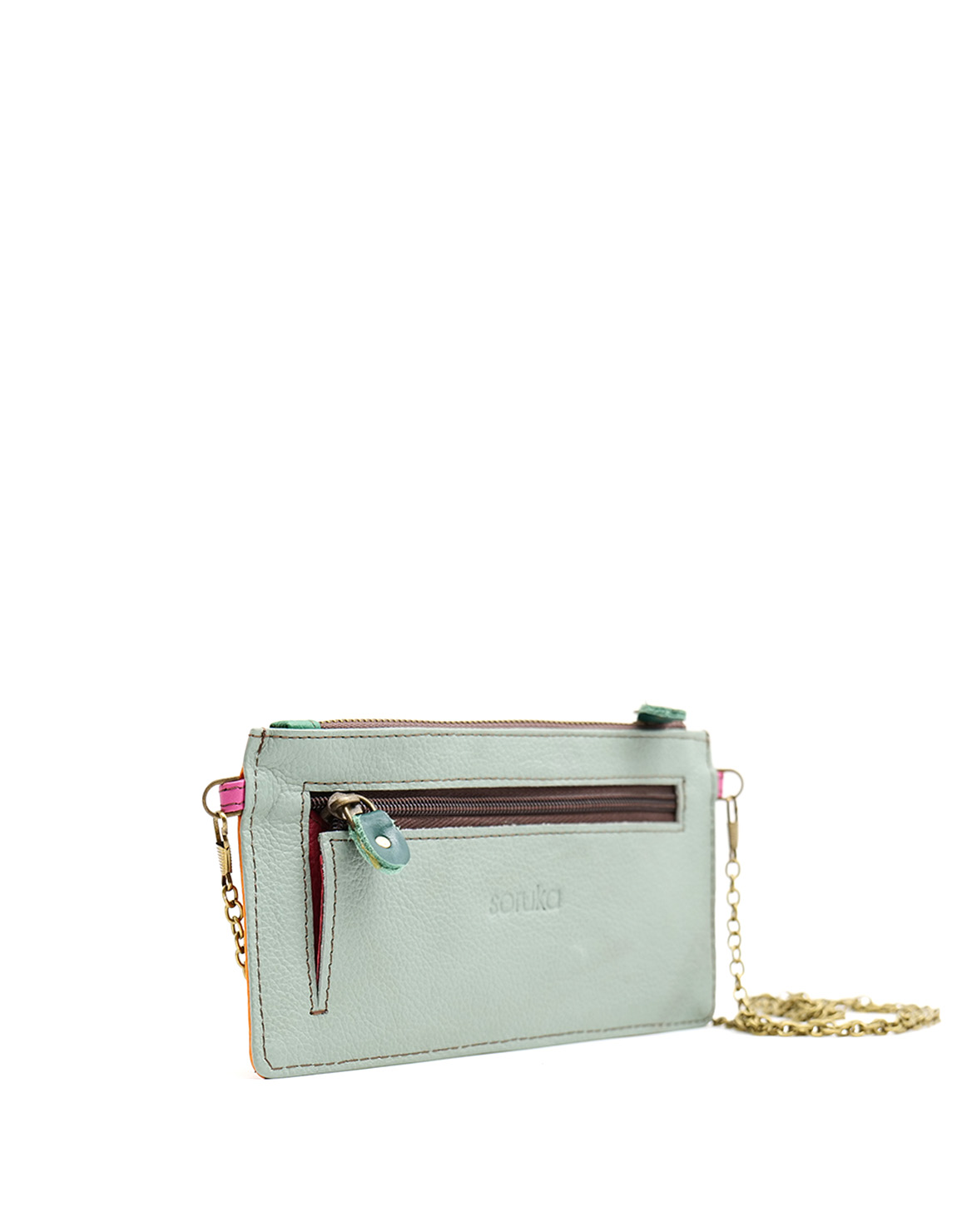 Small Women’s Clutch · Recycled Leather Clutch Bag with Chain · Crossbody & Evening Shoulder Purse · Handmade Women’s Recycled Leather Wallet · Soft Card Holder Wallet with Zipper Compartment · Gift for Her