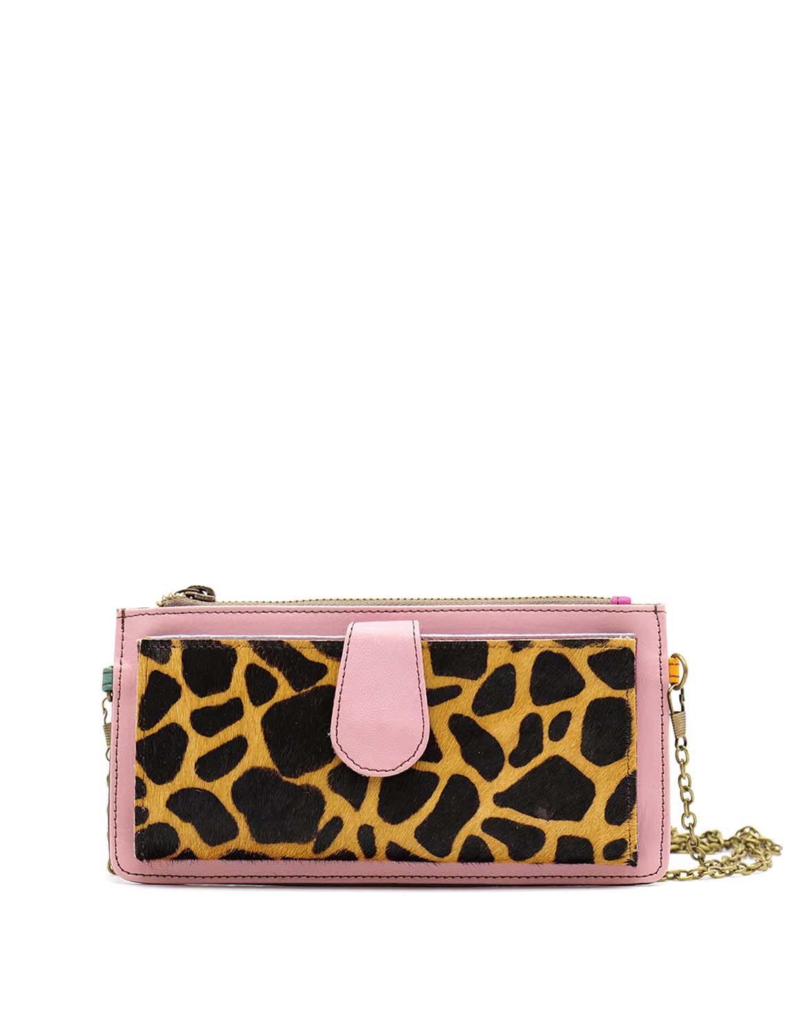 Recycled Leather Clutch with Animal Print and in Shades of Pink. Beautiful Handcrafted Eco-Friendly Wallet made with Upcycled Leather.