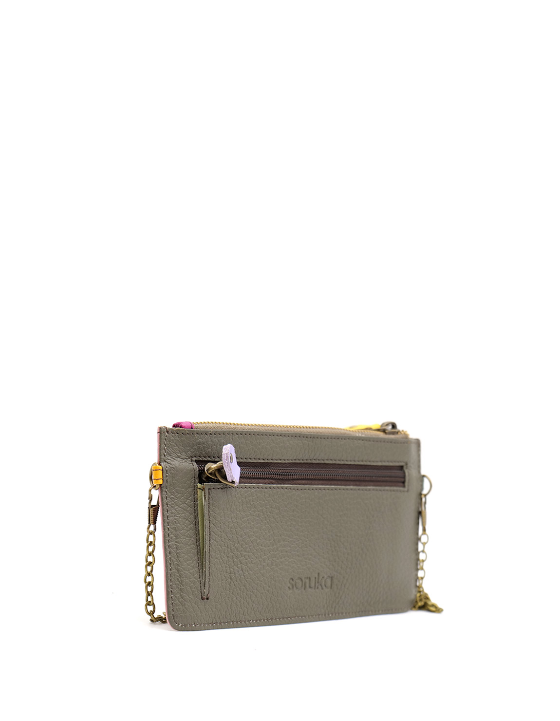 Small Women’s Clutch · Recycled Leather Clutch Bag with Chain · Crossbody & Evening Shoulder Purse · Handmade Women’s Recycled Leather Wallet · Soft Card Holder Wallet with Zipper Compartment · Gift for Her