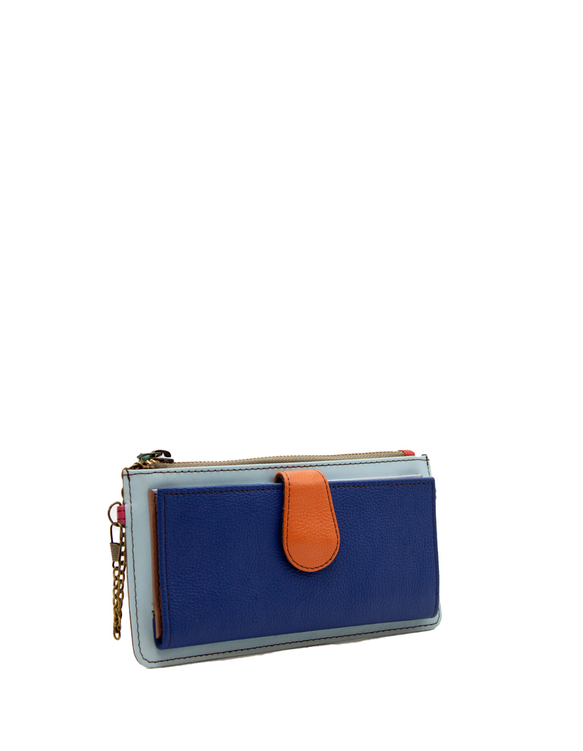 Recycled Leather Clutch in Shades of Dark Blue and Blue. Beautiful Handcrafted Eco-Friendly Wallet made with Upcycled Leather.