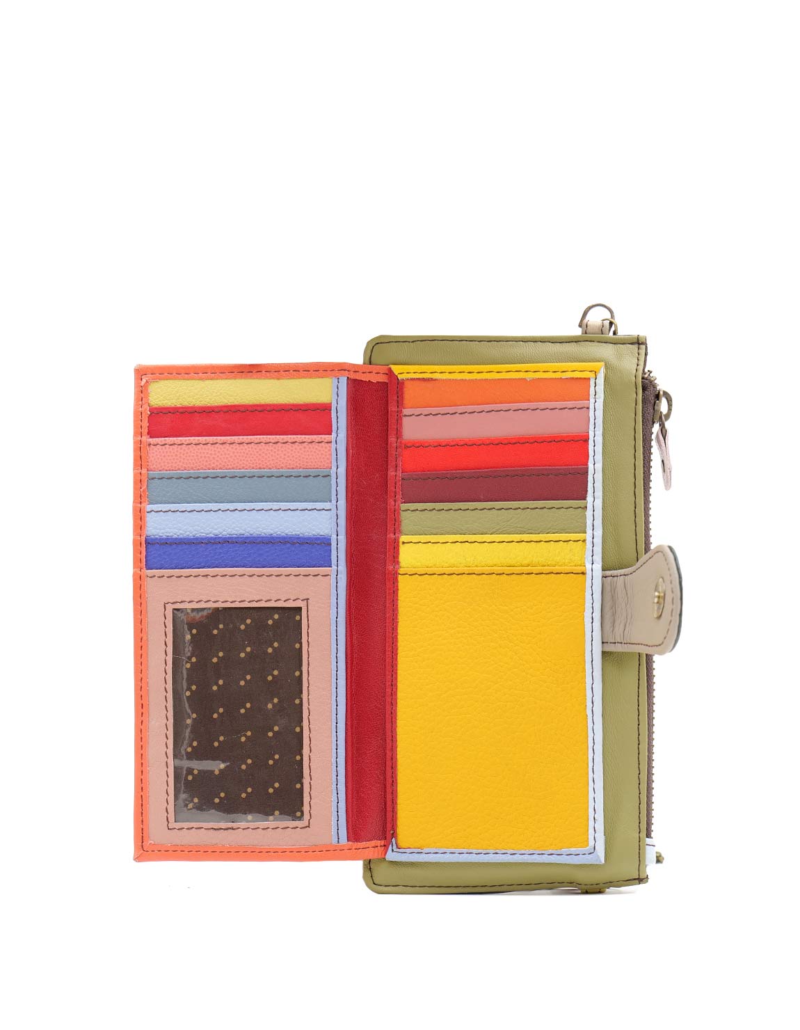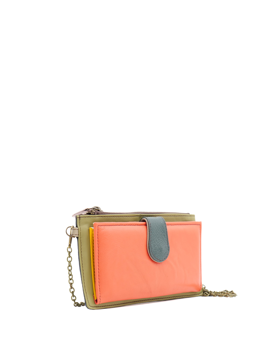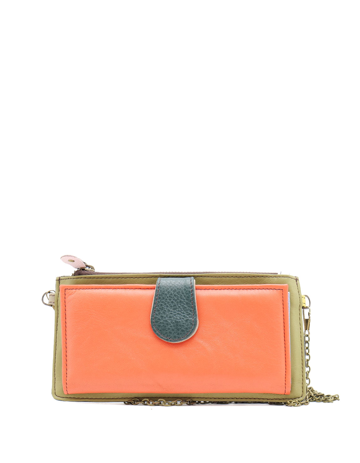 Recycled Leather Clutch in Shades of Salmon and Green. Beautiful Handcrafted Eco-Friendly Wallet made with Upcycled Leather.