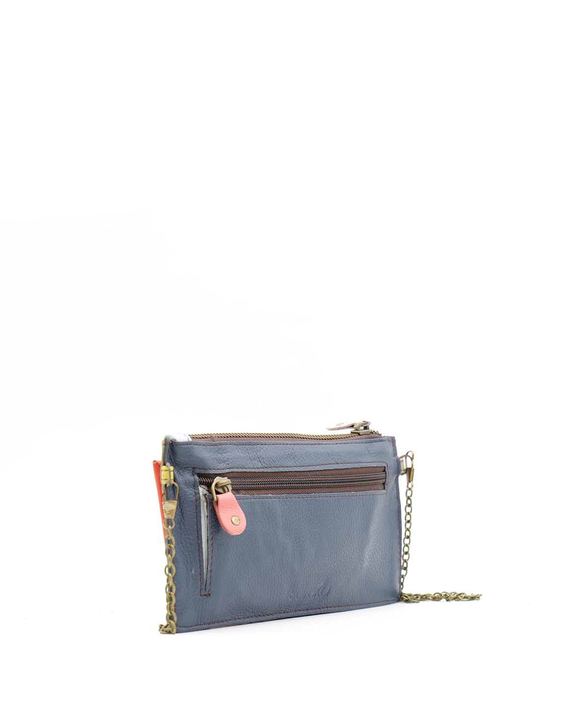 Small Women’s Clutch · Recycled Leather Clutch Bag with Chain · Crossbody & Evening Shoulder Purse · Handmade Women’s Recycled Leather Wallet · Soft Card Holder Wallet with Zipper Compartment · Gift for Her