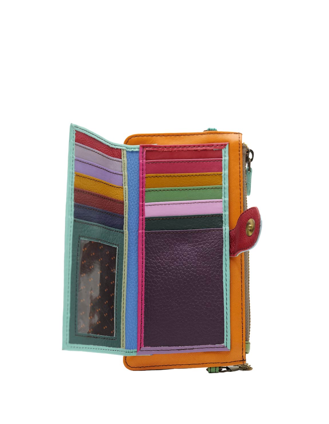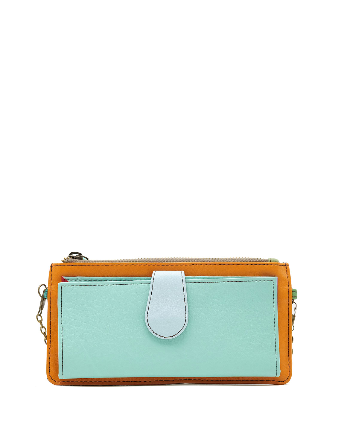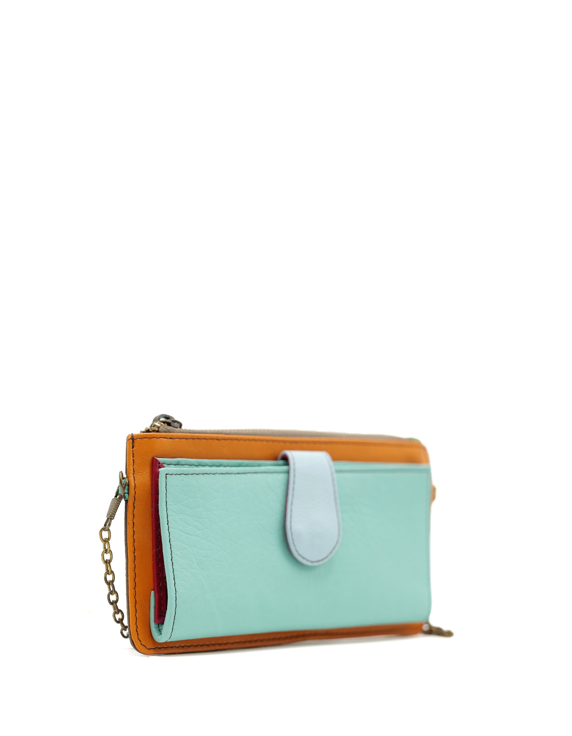 Recycled Leather Clutch in Shades of Turquoise and Orange. Beautiful Handcrafted Eco-Friendly Wallet made with Upcycled Leather.