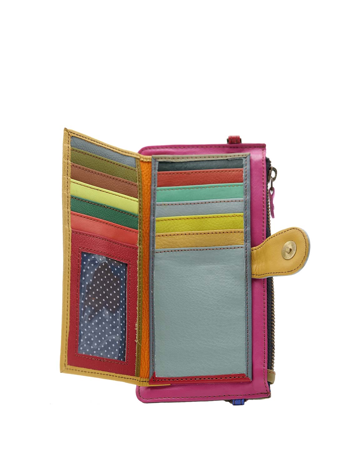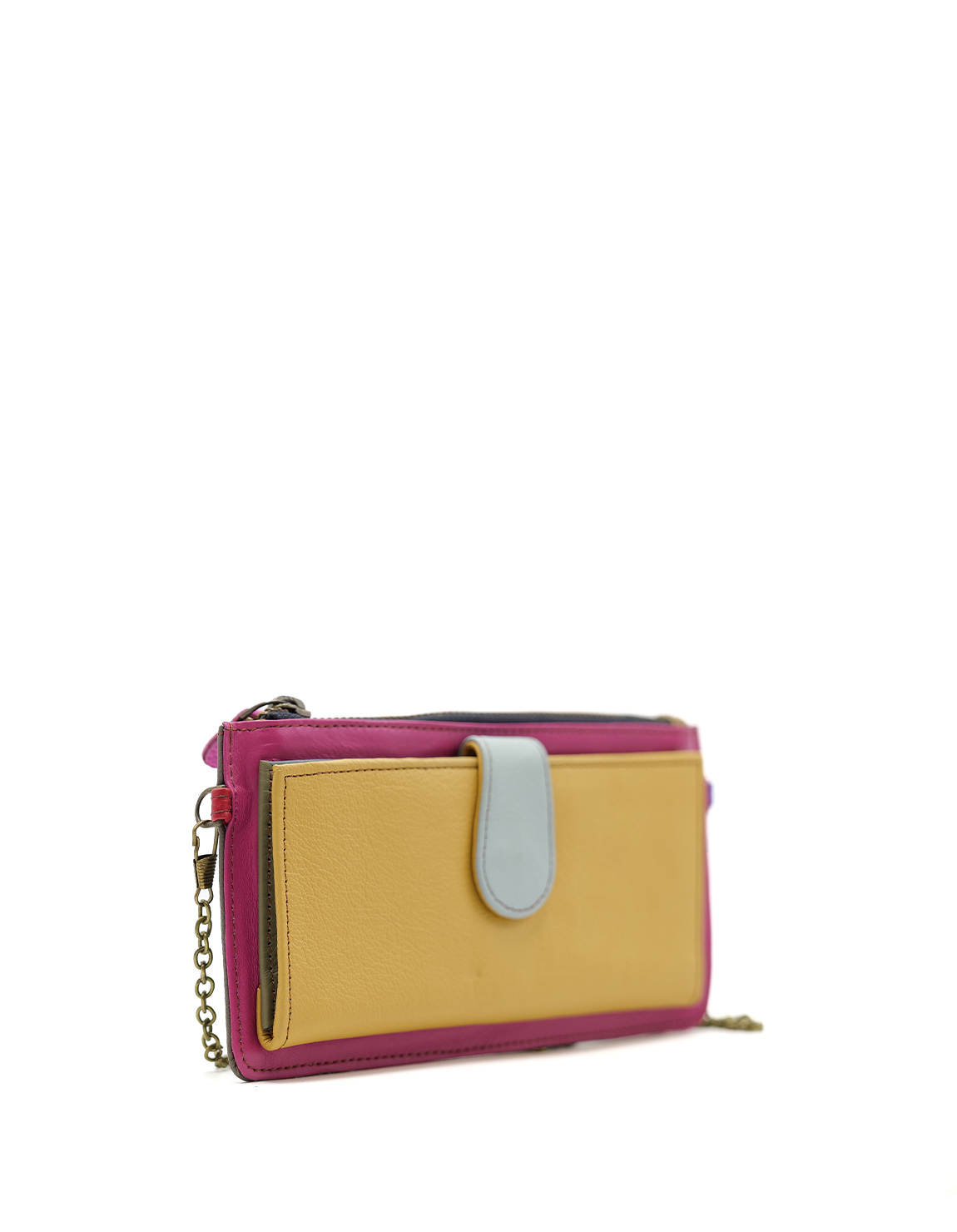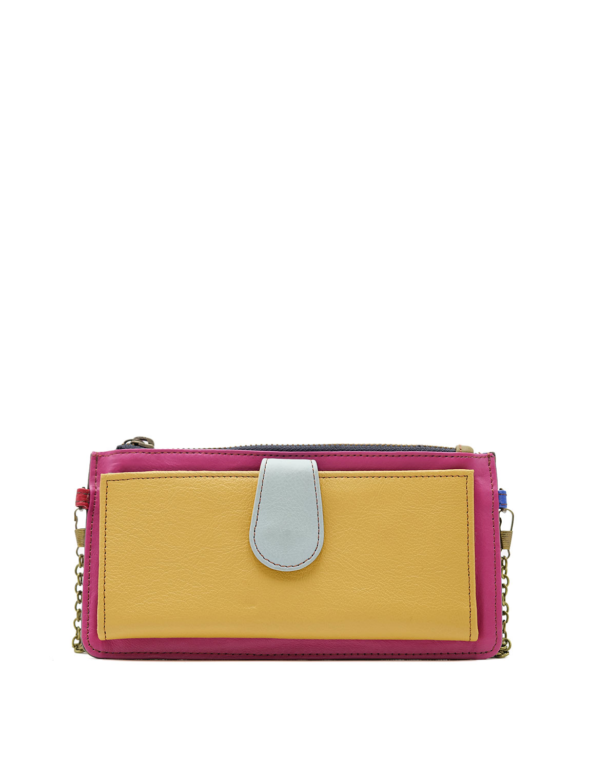 Recycled Leather Clutch in Shades of Yellow and Pink. Beautiful Handcrafted Eco-Friendly Wallet made with Upcycled Leather.