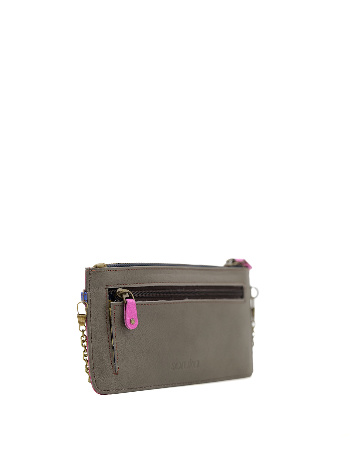 Small Women’s Clutch · Recycled Leather Clutch Bag with Chain · Crossbody & Evening Shoulder Purse · Handmade Women’s Recycled Leather Wallet · Soft Card Holder Wallet with Zipper Compartment · Gift for Her