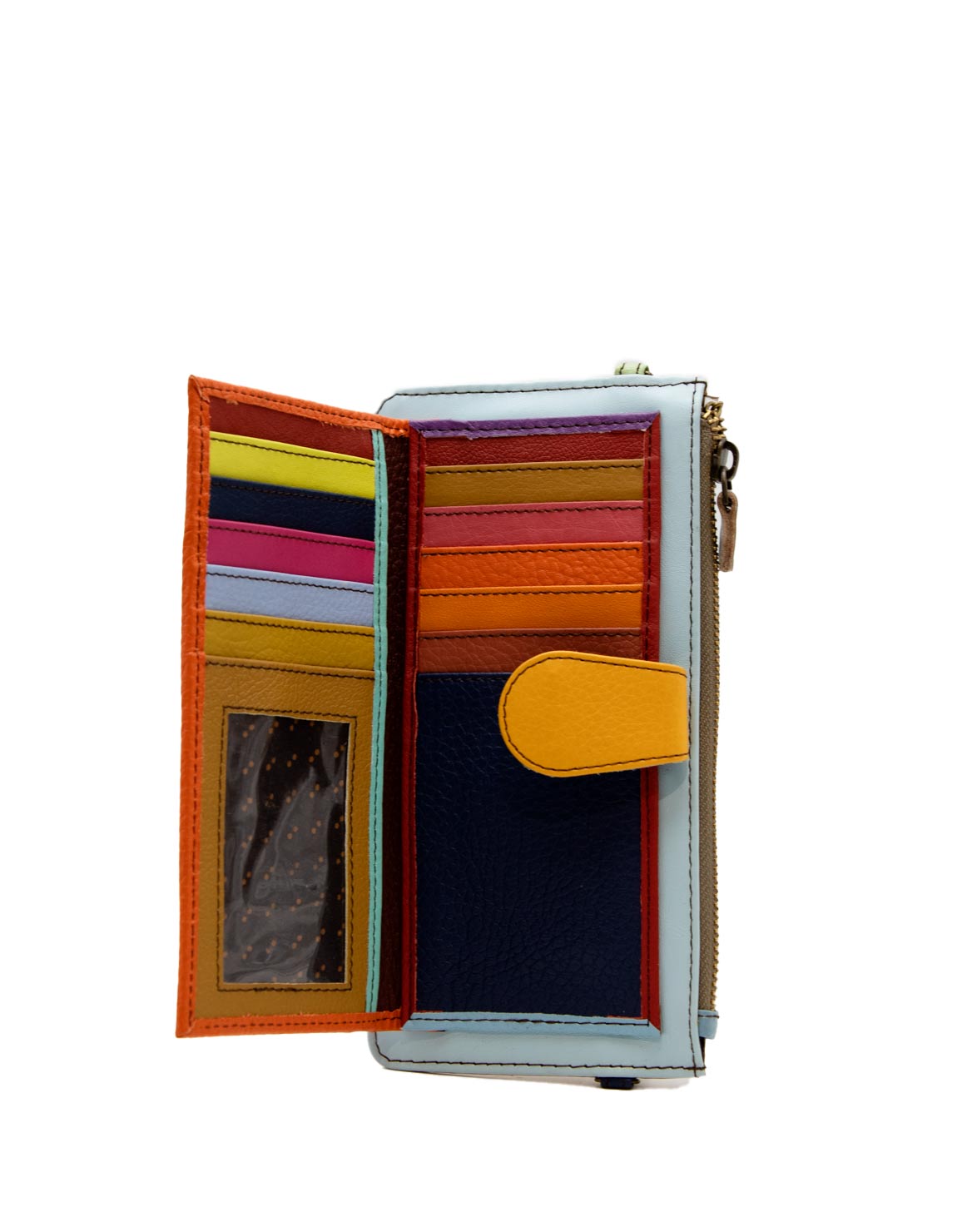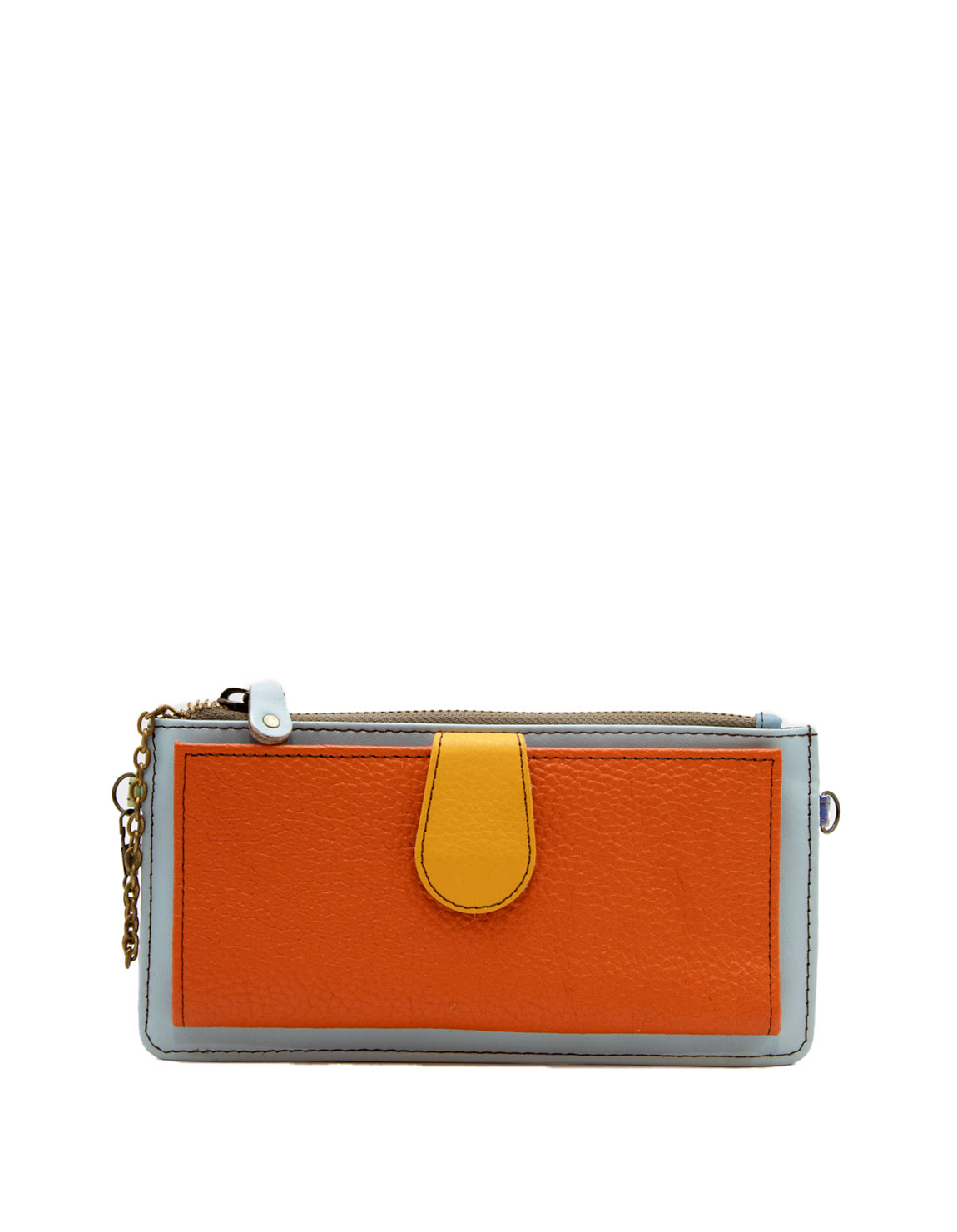 Recycled Leather Clutch in Shades of Orange and Blue. Beautiful Handcrafted Eco-Friendly Wallet made with Upcycled Leather.