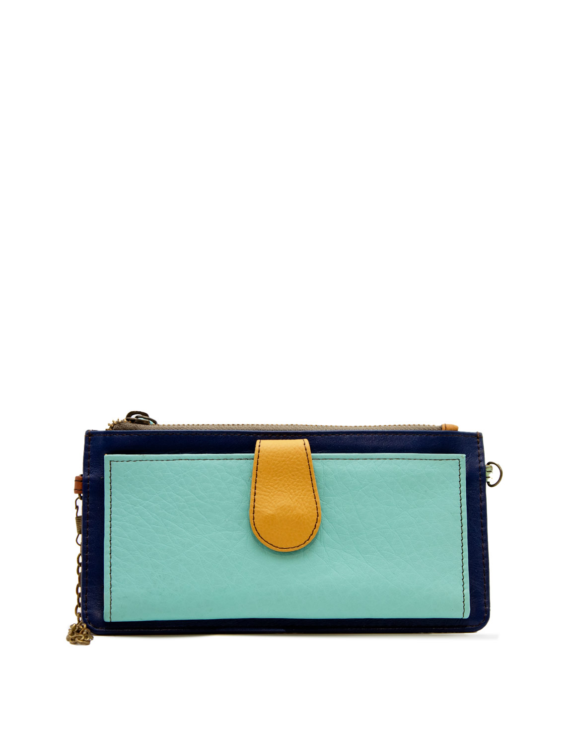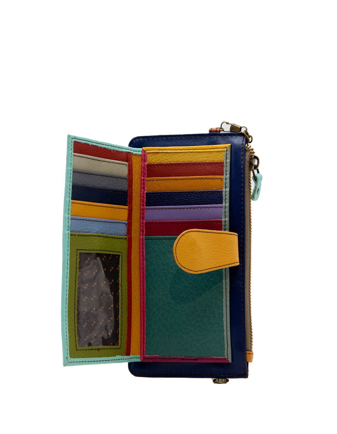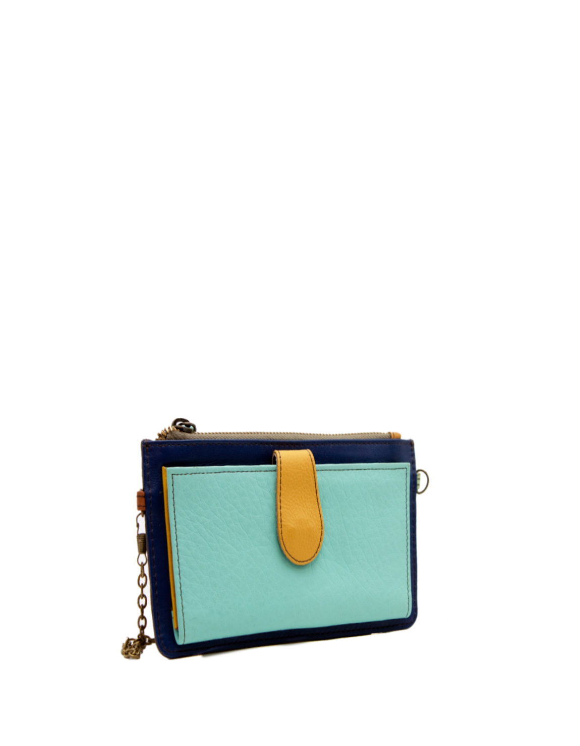 Recycled Leather Clutch in Shades of Dark Blue and Blue. Beautiful Handcrafted Eco-Friendly Wallet made with Upcycled Leather.