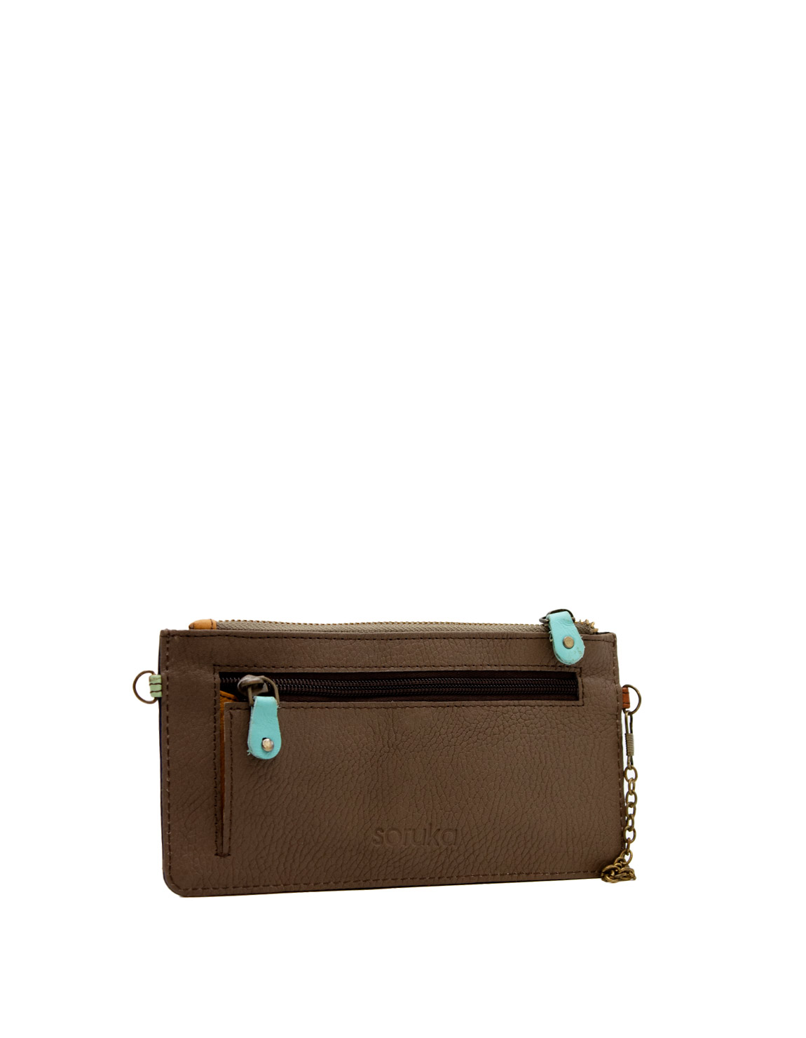 Small Women’s Clutch · Recycled Leather Clutch Bag with Chain · Crossbody & Evening Shoulder Purse · Handmade Women’s Recycled Leather Wallet · Soft Card Holder Wallet with Zipper Compartment · Gift for Her