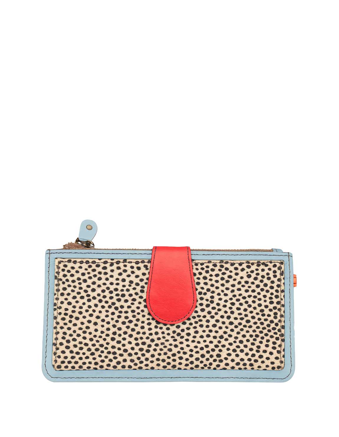 Recycled Leather Clutch with Animal Print and in Shades of Blue. Beautiful Handcrafted Eco-Friendly Wallet made with Upcycled Leather.