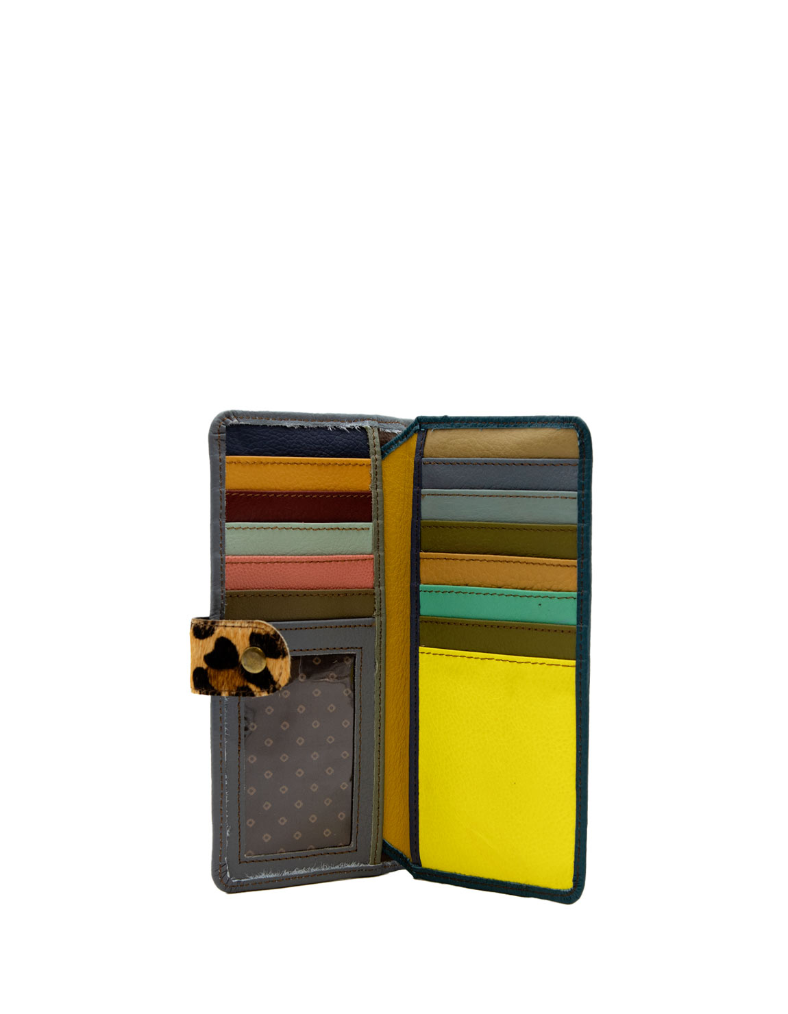 This colorful long-shaped wallet is unique and complements all types of looks. Includes: