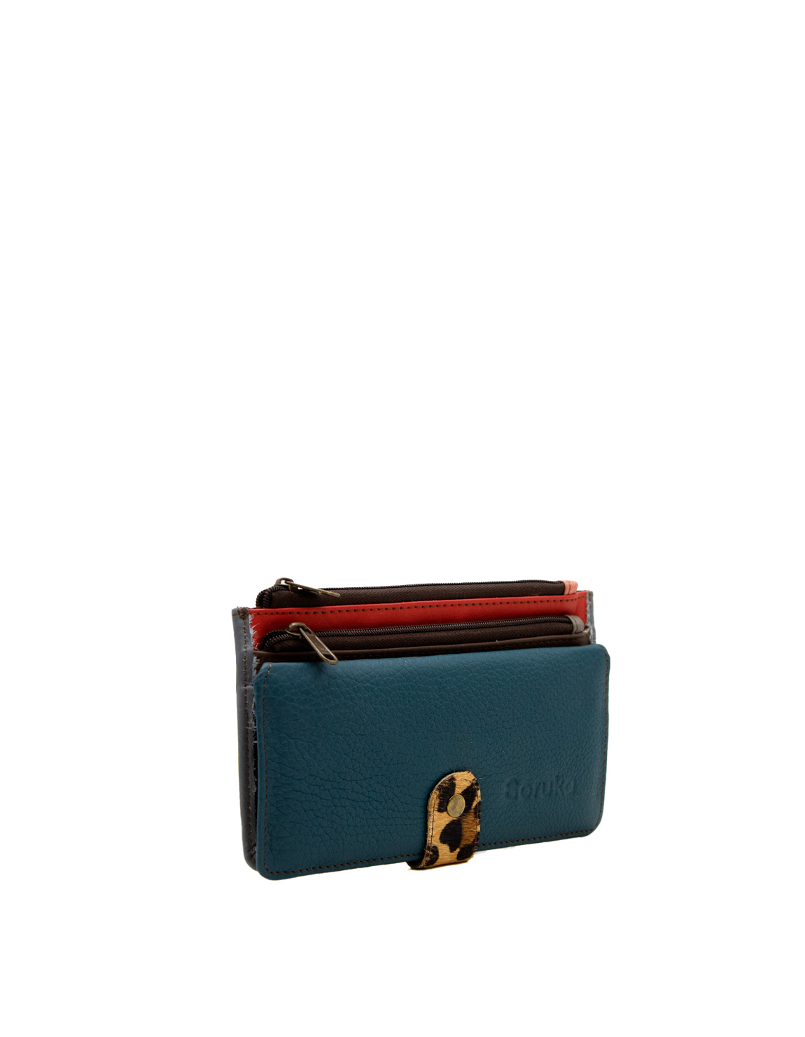 Leather Wallet · Handmade Women’s Recycled Leather Wallet · Card Holder Wallet with Zipper pockets & Magnetic Clasp · Gift for Her · Long-shaped Thin Wallet