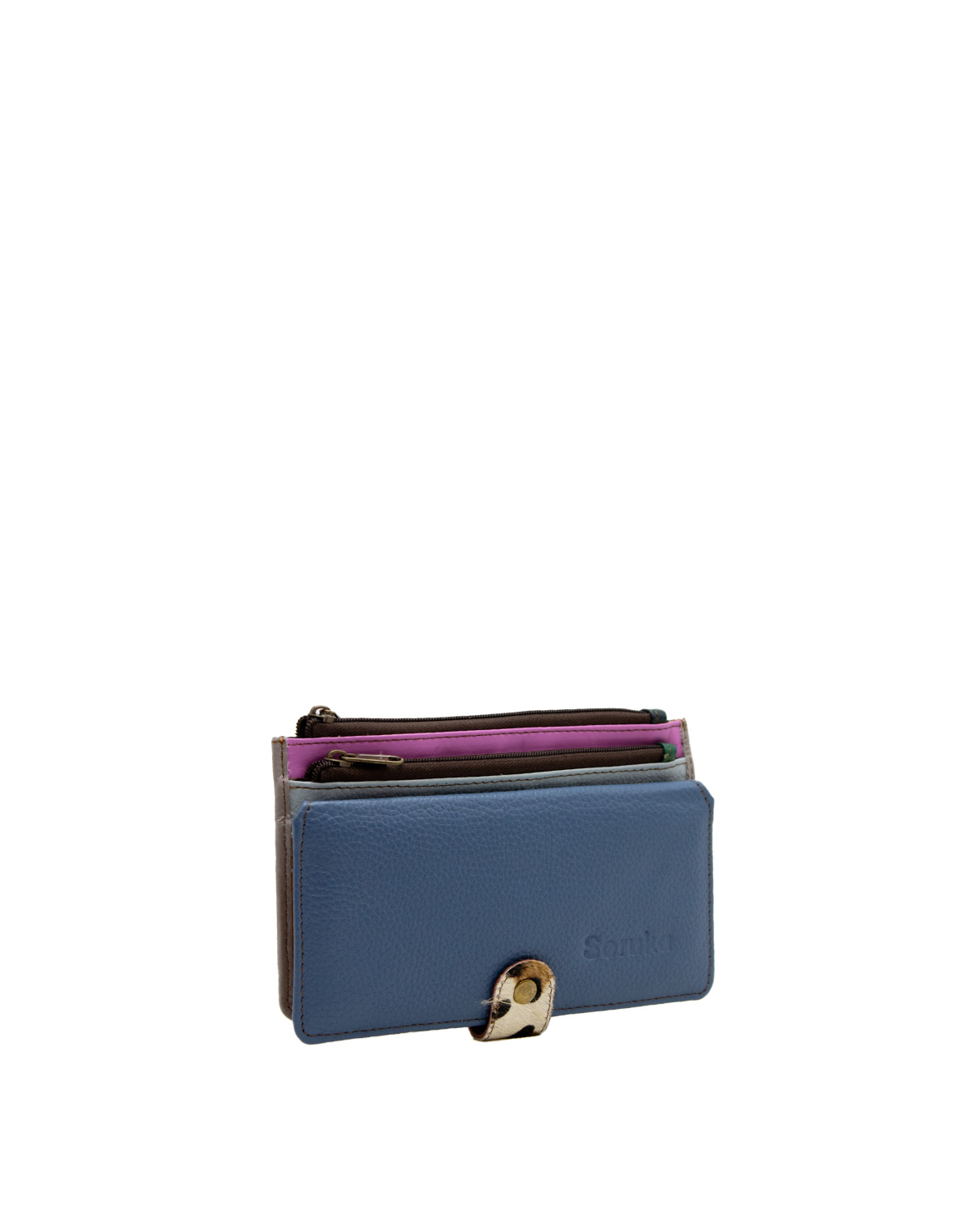 Leather Wallet · Handmade Women’s Recycled Leather Wallet · Card Holder Wallet with Zipper pockets & Magnetic Clasp · Gift for Her · Long-shaped Thin Wallet