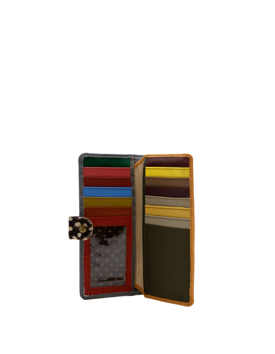 This colorful long-shaped wallet is unique and complements all types of looks. Includes: