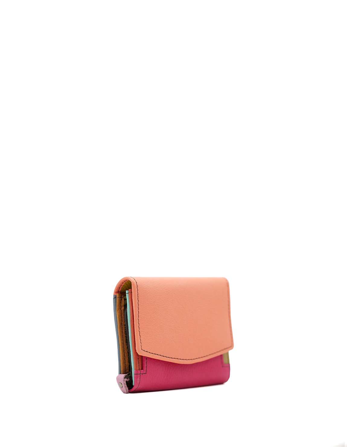 Colorful Leather Handcrafted Wallet. Beautiful Eco-Friendly Wallet made with Recycled Leather. Colorful Coin Purse Wallet with Orange and Red colors. Lots of room to keep all your cards and essentials!