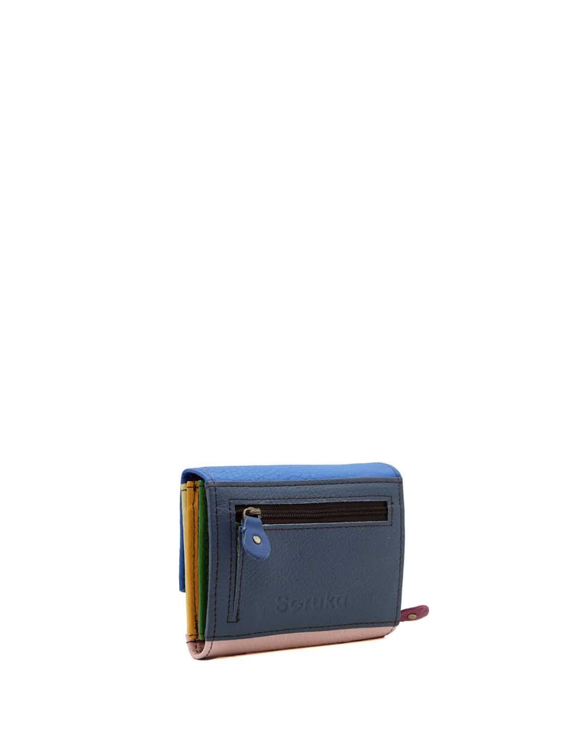 Colorful Leather Handcrafted Wallet. Beautiful Eco-Friendly Wallet made with Recycled Leather. Colorful Coin Purse Wallet with Blue and Pink colors. Lots of room to keep all your cards and essentials!