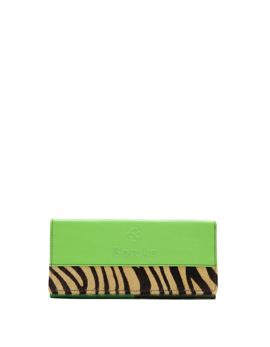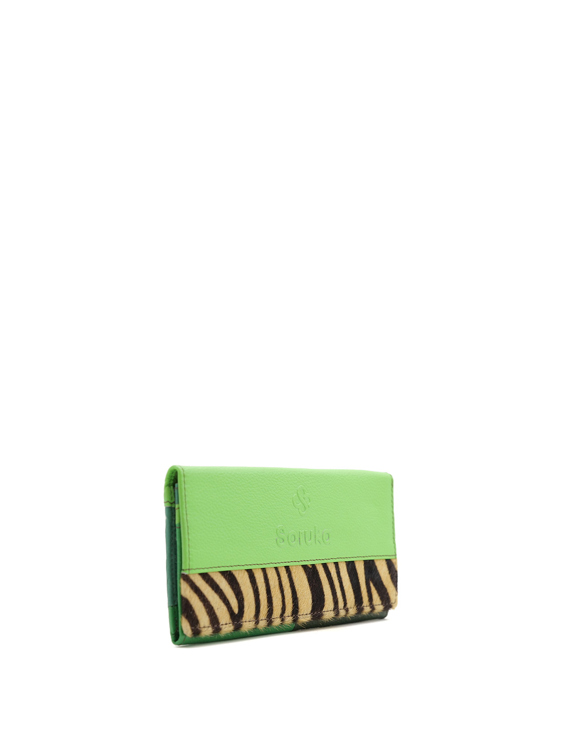 Elevate your style with this handcrafted recycled leather wallet, designed for both elegance and sustainability. This eco-friendly bi-fold wallet is as stylish as it is practical and has a sleek, long shape in shades of Green and with an eye-catching animal print detail.