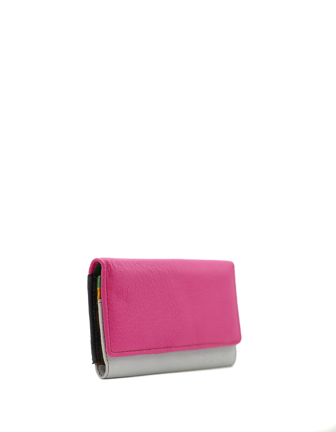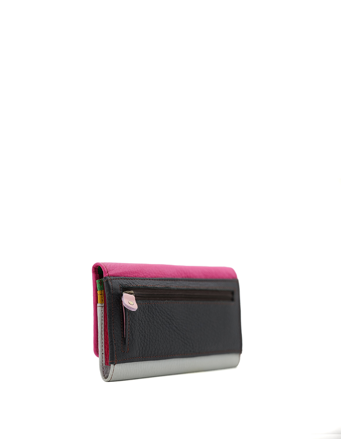 Authentic leather handcrafted wallet in Shades of Pink and Gray. Beautiful eco-friendly wallet made with recycled leather.