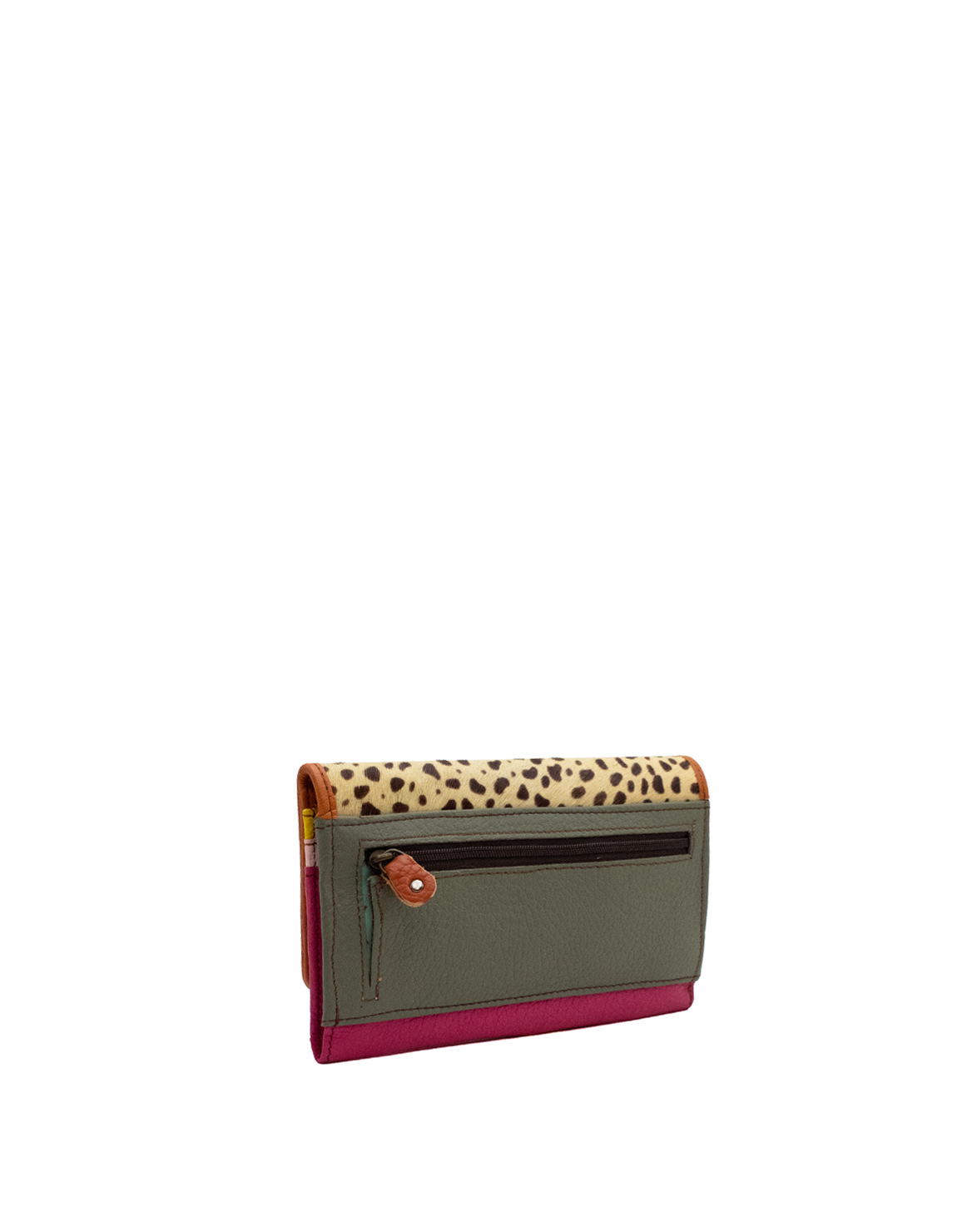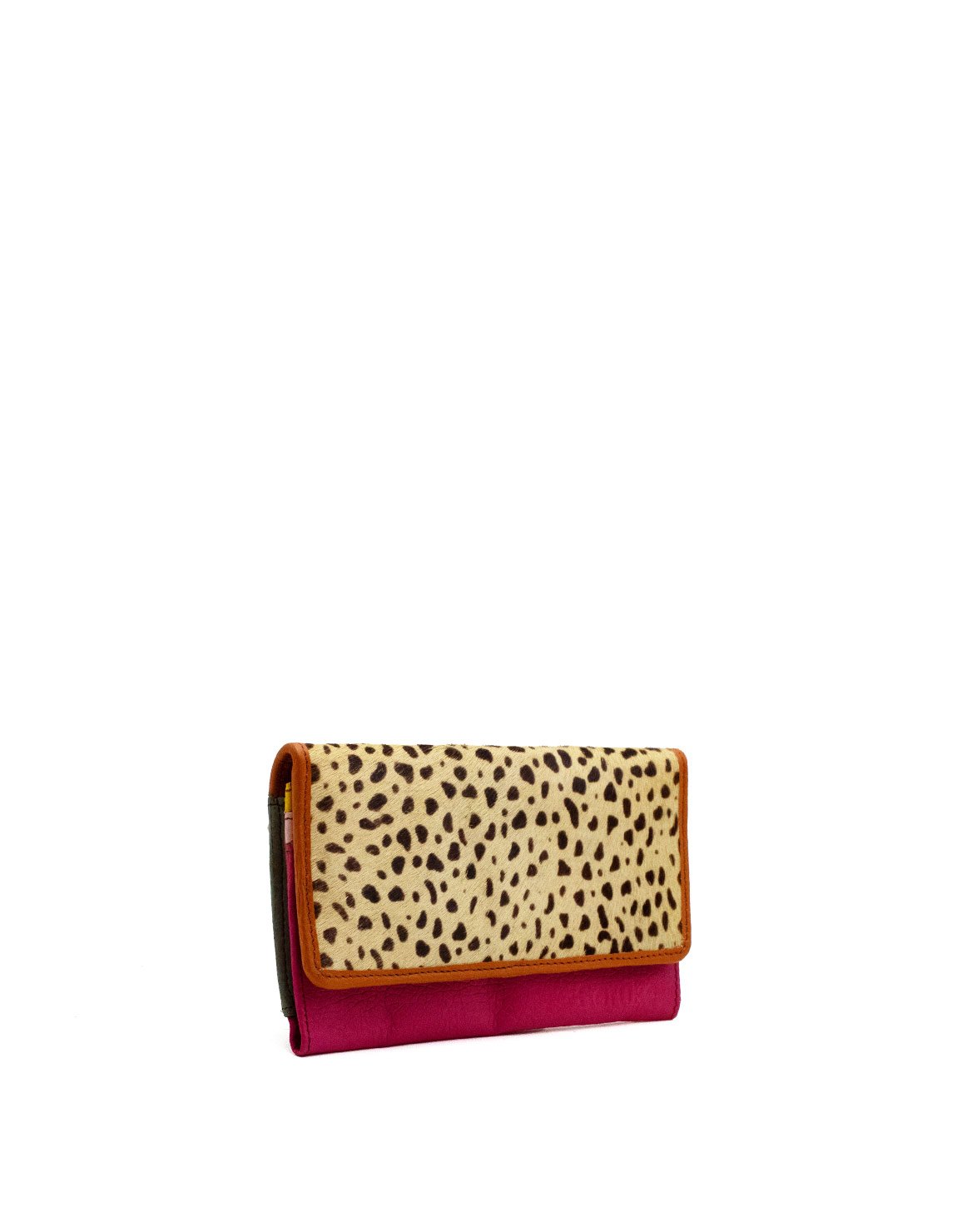 Authentic leather handcrafted wallet in shades of Pink and with Animal print flap. Beautiful eco-friendly wallet made with recycled leather.