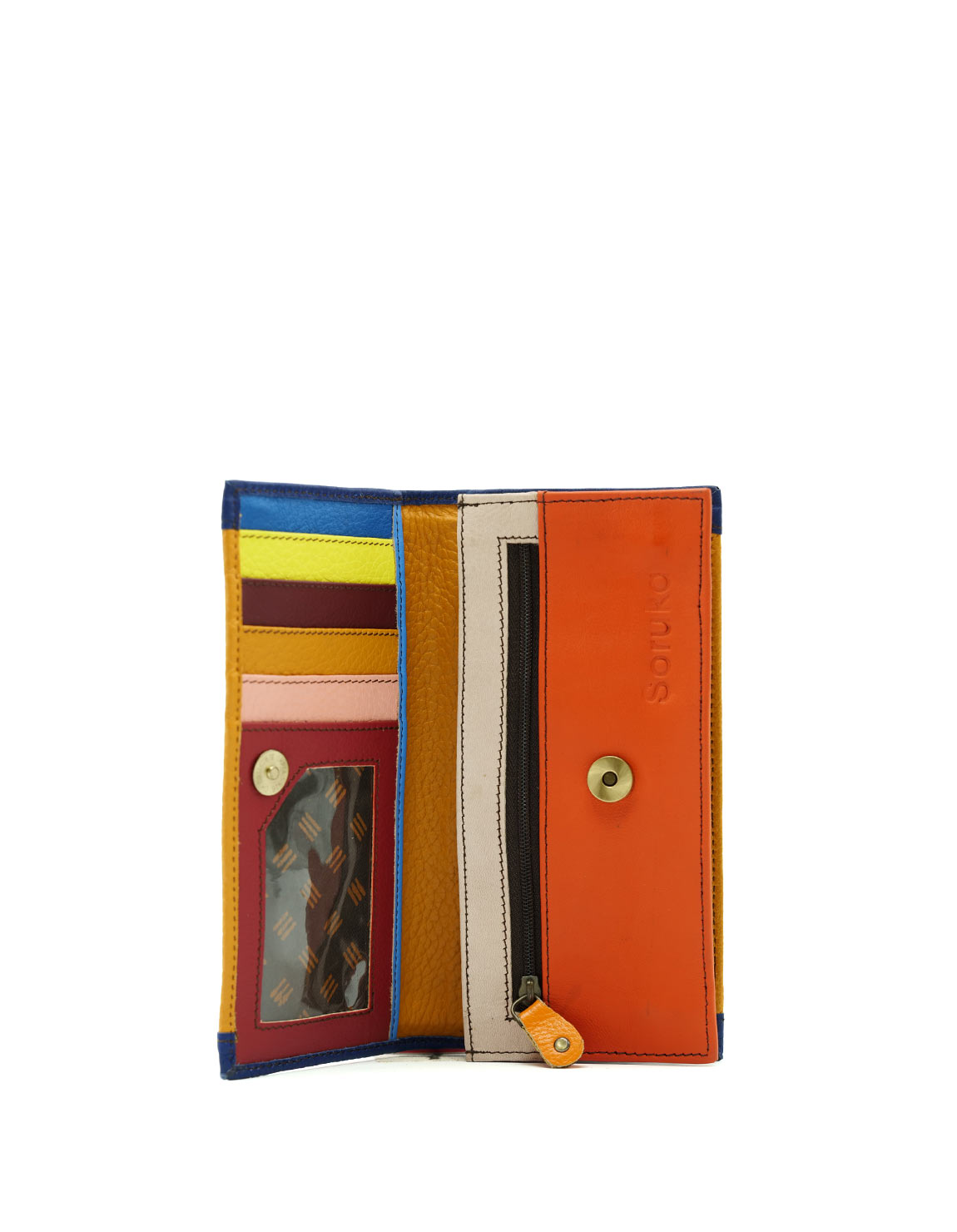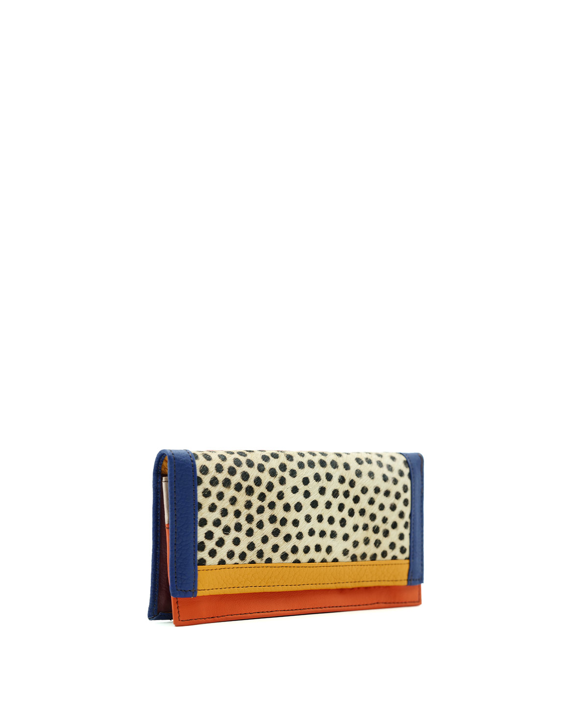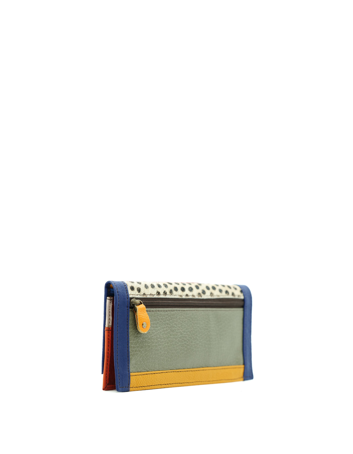 Authentic Leather Handcrafted Wallet in Shades of Orange and Blue and with Animal print. Beautiful Eco-Friendly Wallet made with Upcycled Leather.