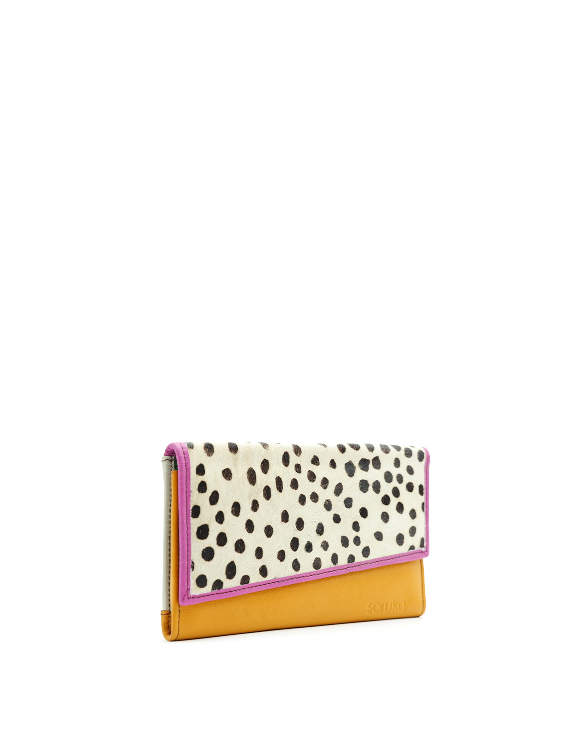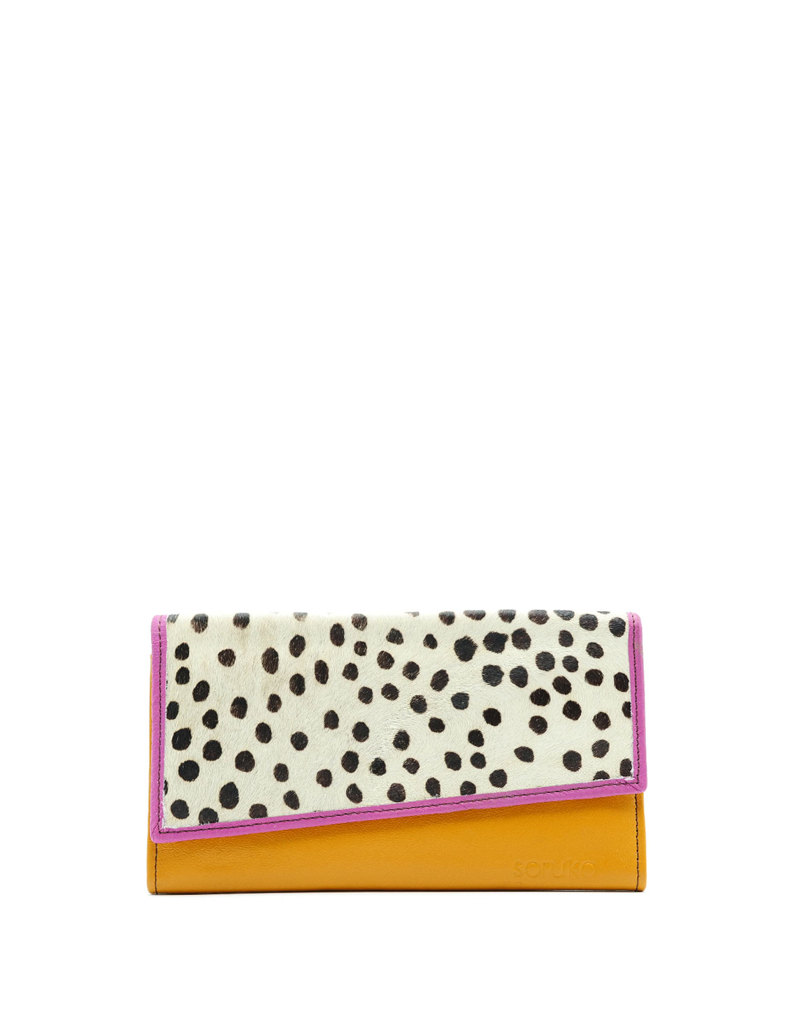 Authentic Leather Handcrafted Wallet in shades of Yellow and with Animal print. Beautiful Eco-Friendly Wallet made with Recycled Leather.