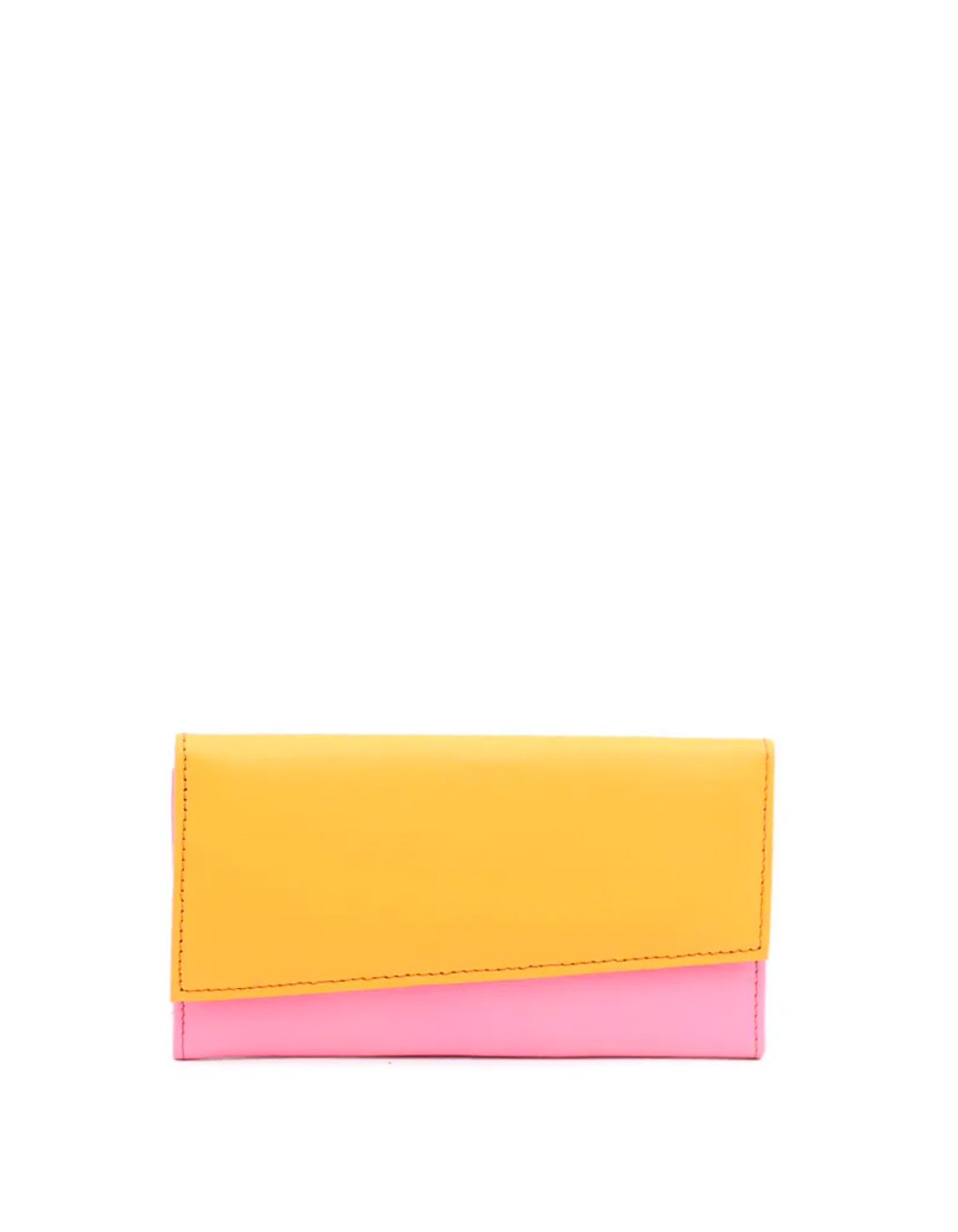 Authentic Leather Handcrafted Wallet with Pink and Yellow colors. Beautiful Eco-Friendly Wallet made with Recycled Leather.