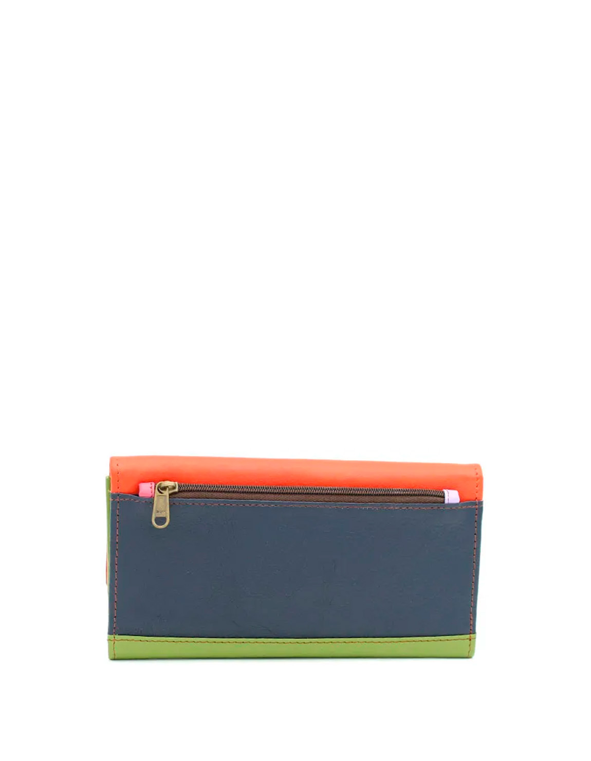 Authentic Leather Handcrafted Wallet with Orange and Green colors. Beautiful Eco-Friendly Wallet made with Recycled Leather.