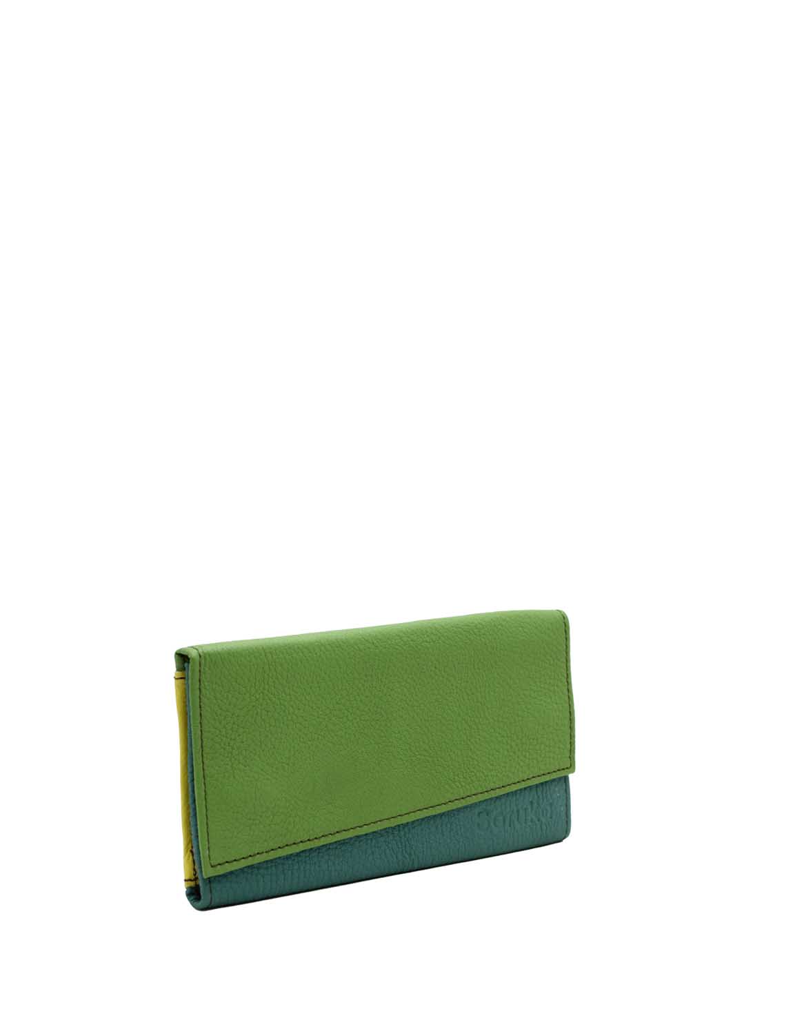 Authentic Leather Handcrafted Wallet in shades of Green and Light Blue. Beautiful Eco-Friendly Wallet made with Recycled Leather.