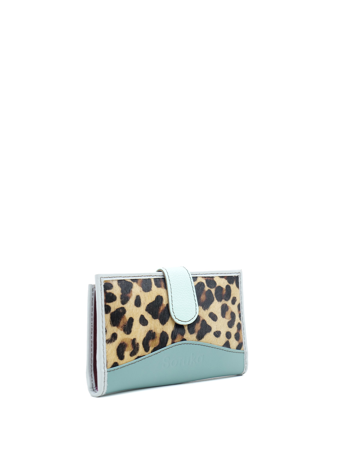 Authentic Leather Handcrafted Wallet with Animal Print and Blue Body. Beautiful Eco-Friendly Wallet made with Recycled Leather.