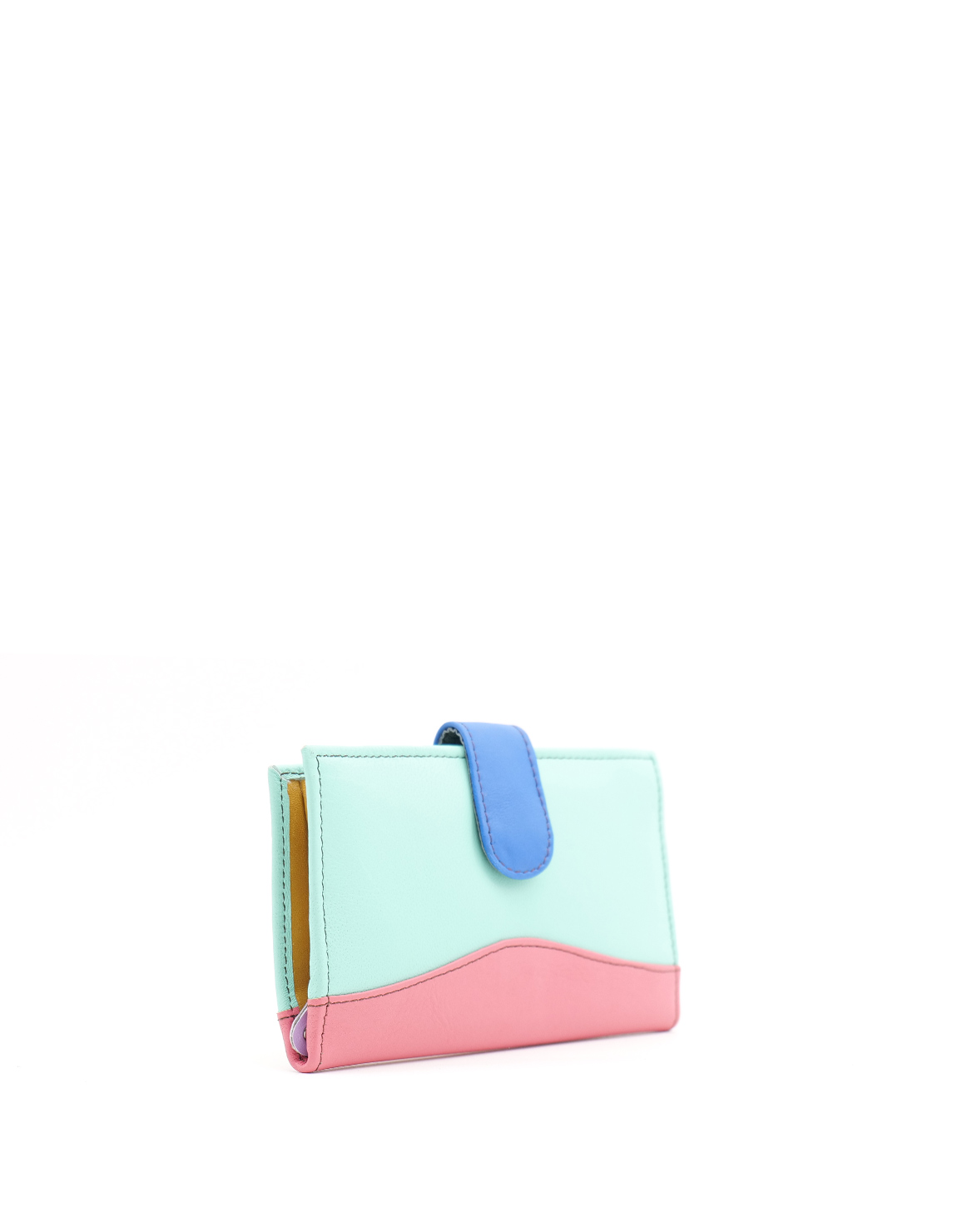 Authentic Leather Handcrafted Wallet in Turquoise and Pink colors. Beautiful Eco-Friendly Wallet made with Recycled Leather.